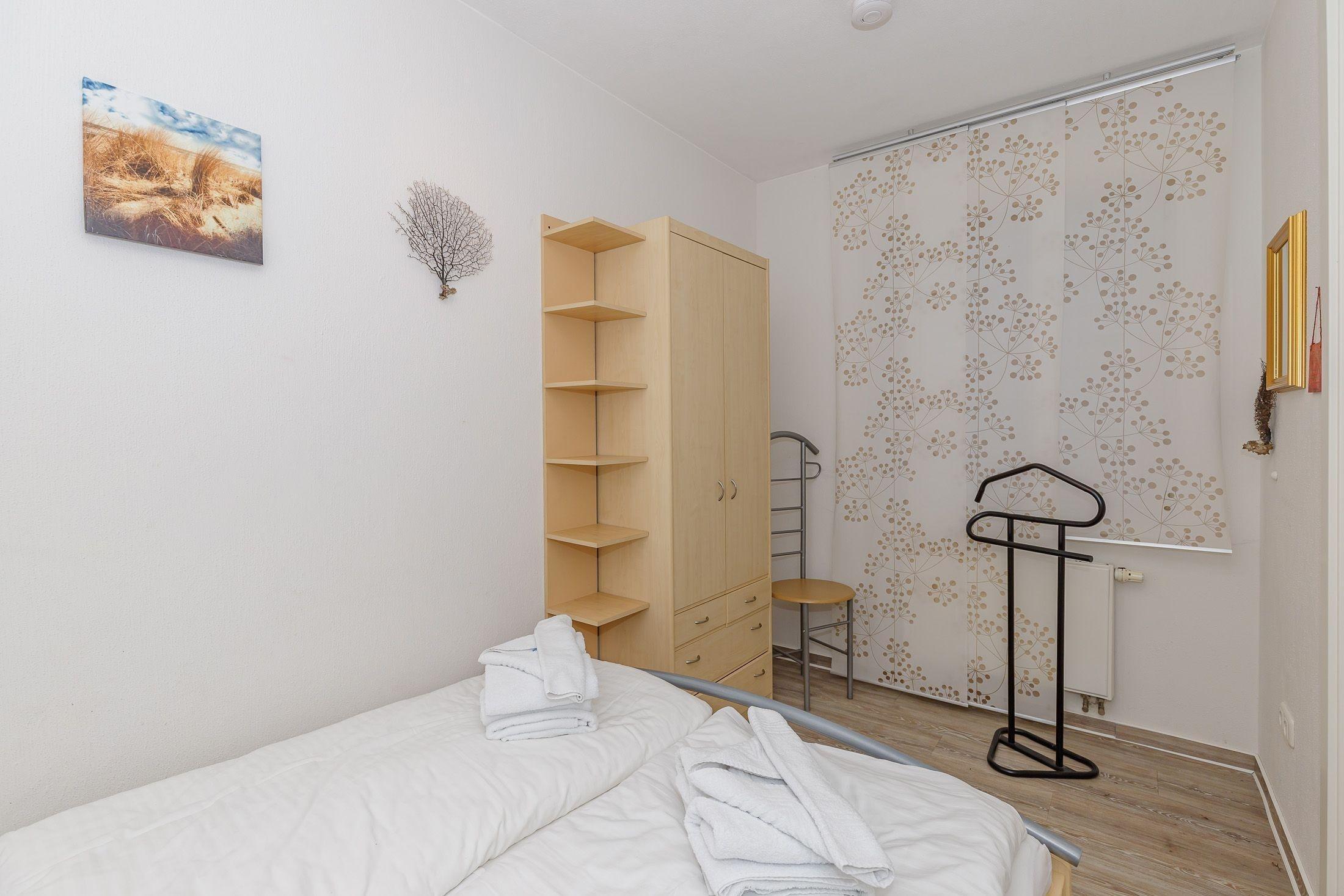 Das zweite Schlafzimmer wurde gerade ein wenig umgestaltet. Nun finden Sie hier ein 1,20 m breites Bett, auf dem zwei Kinder oder auch zwei junge Erwachsene bequem Platz finden für einen erholsamen Schlaf. Auch in diesem Zimmer befindet sich ein Kleiderschrank für Ihre Urlaubsgarderobe.