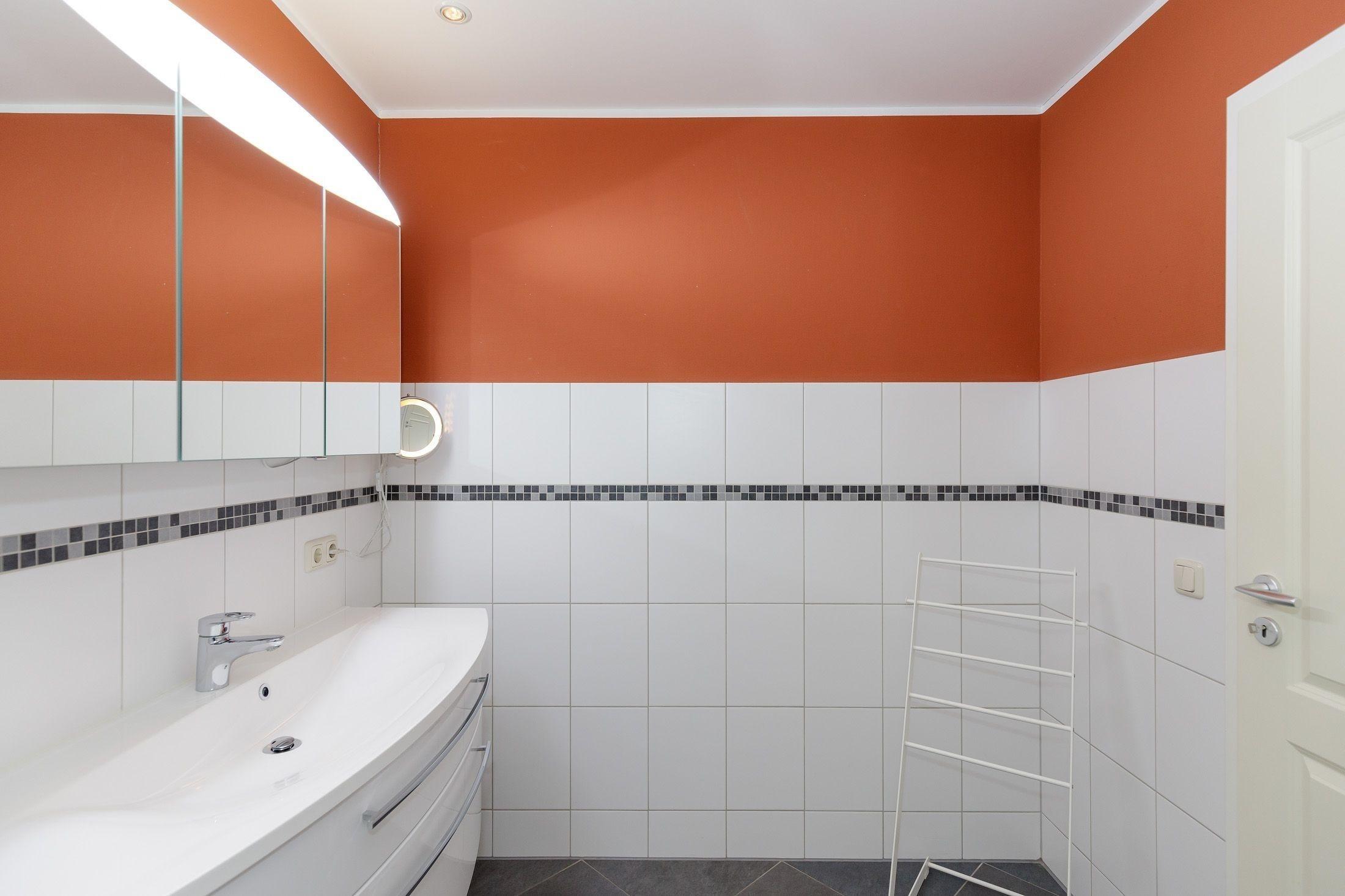 Im Badezimmer haben wir einen herunterklappbaren Wandwickeltisch installiert. Weiterhin ist eine Dusche, ein Waschbecken und ein Kosmetikspiegel mit Haartrockner vorhanden. Das WC befindet sich in einem separaten Raum mit einem weiteren Waschbecken.