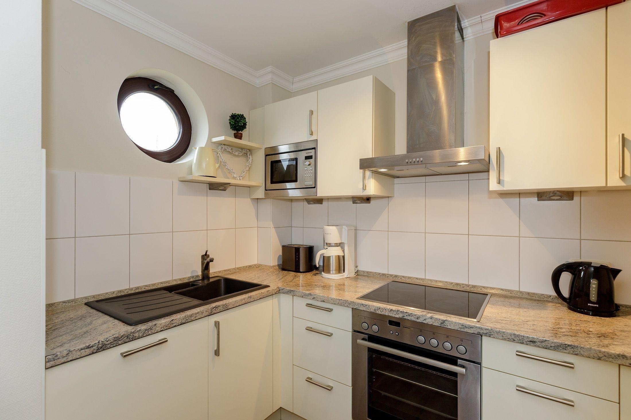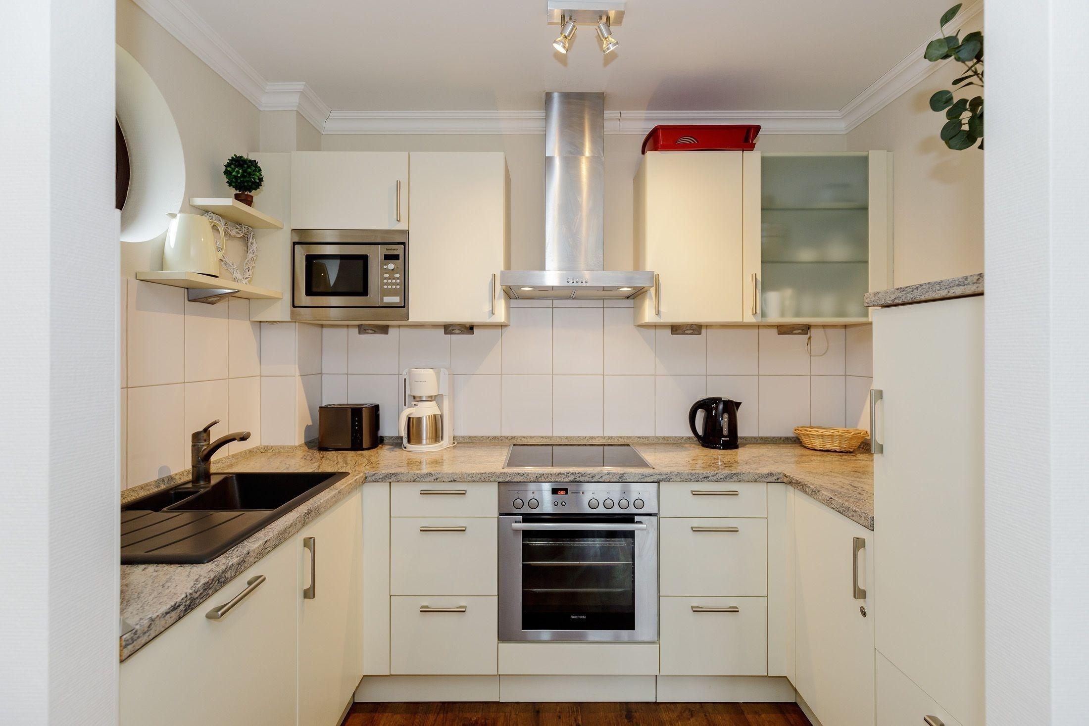 An den Wohnbereich grenzt die voll ausgestattete Küche. Hier finden Sie alle nützlichen Geräte und weiteren Küchenutensilien für die Zubereitung Ihrer Mahlzeiten.