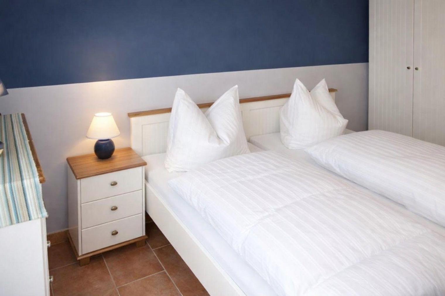 Im Elternschlafzimmer finden Sie Träume in blau! Es ist mit einem komfortablen Doppelbett (1,80 x 2,00 m) und einem geräumigen Kleiderschrank eingerichtet.