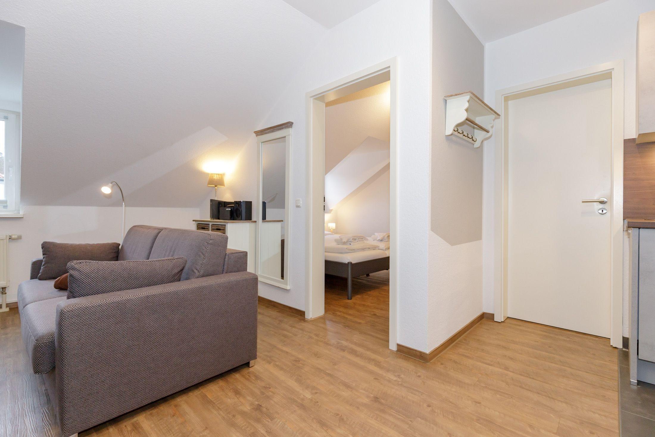 Die hell und freundlich eingerichtete 2-Zimmer-Wohnung befindet sich im 2. Obergeschoss der Ferienwohnanlage "Am Stadtwald".