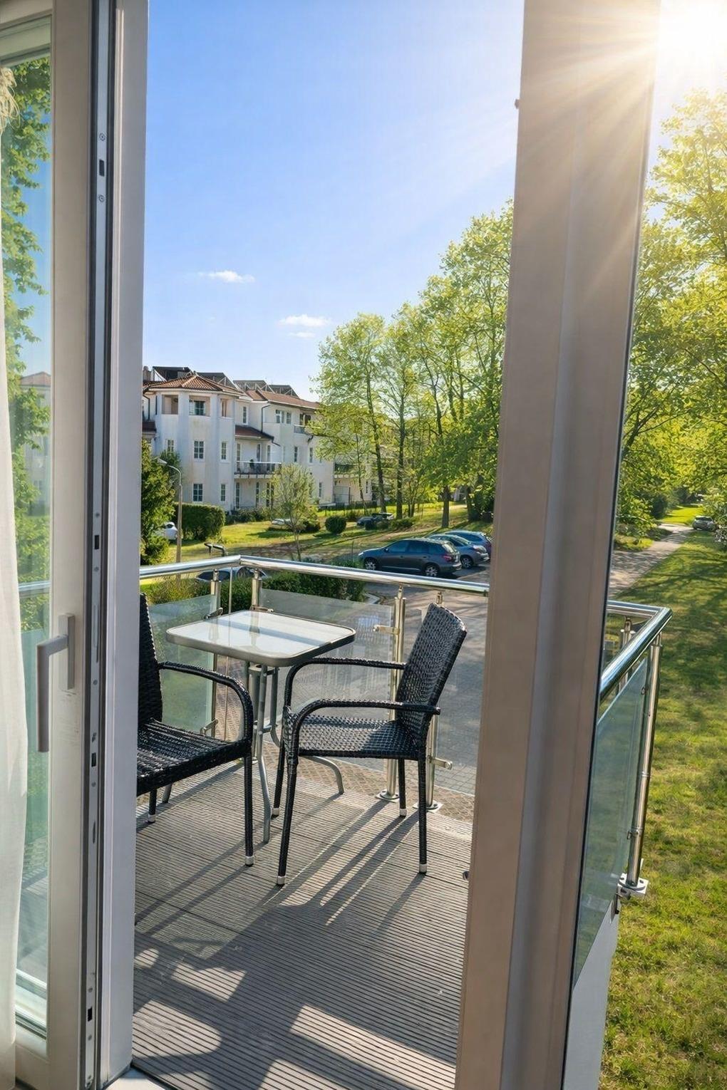 Die Wohnung verfügt über zwei Balkone, wobei der eine zur Südseite ausgerichtet ist und für Sonne satt sorgt und der zweite zur Nordseite und überdacht ist. Zwei kleine Wohlfühloasen zum Verweilen und Relaxen. Lassen Sie hier die Seele baumeln und einen ereignisreichen Tag bei einem leckeren Getränk gemütlich ausklingen.