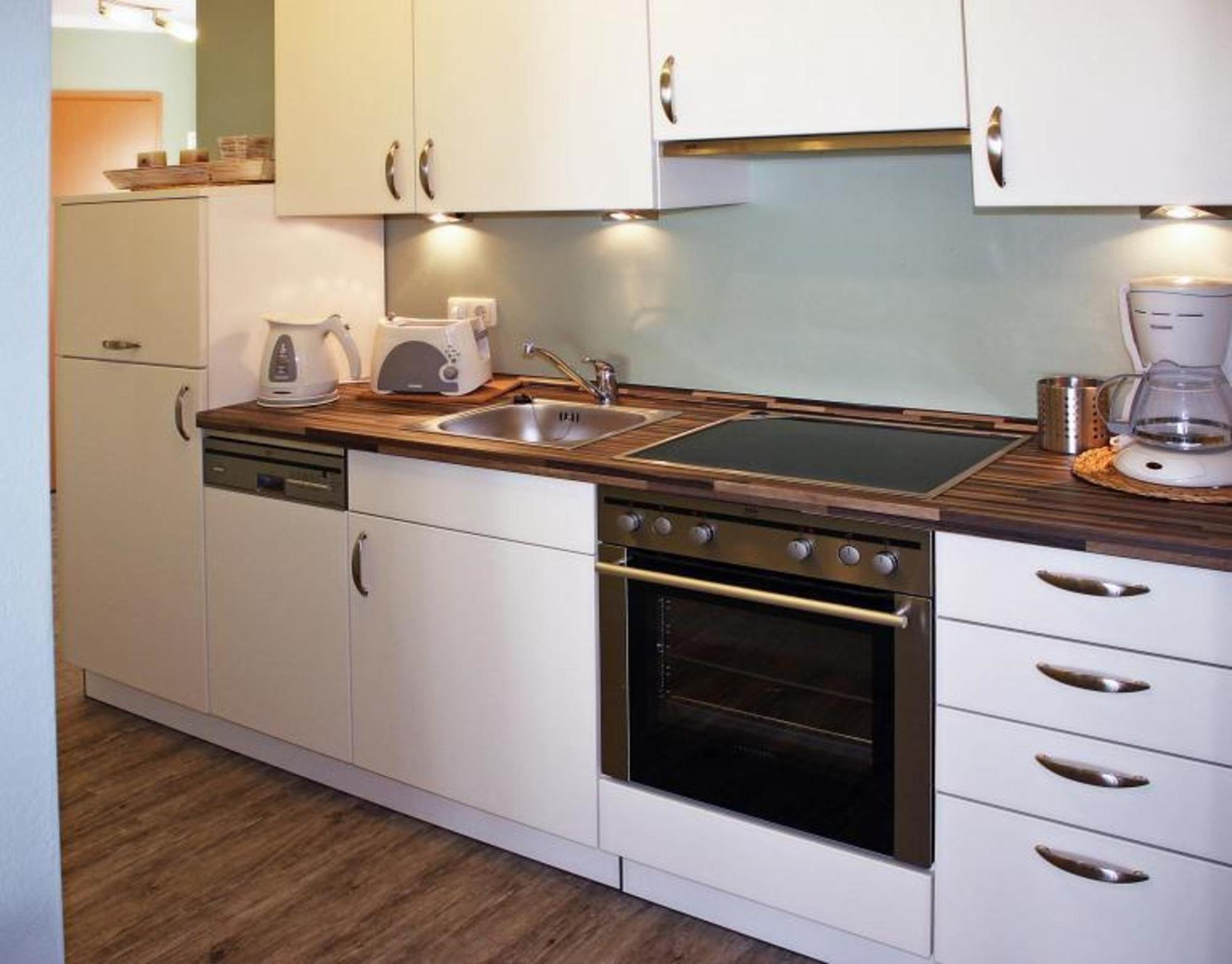 An den Wohn-/Essbereich grenzt die voll ausgestattete Küche. Hier stehen Ihnen alle modernen Küchengeräte- und utensilien zur Verfügung.