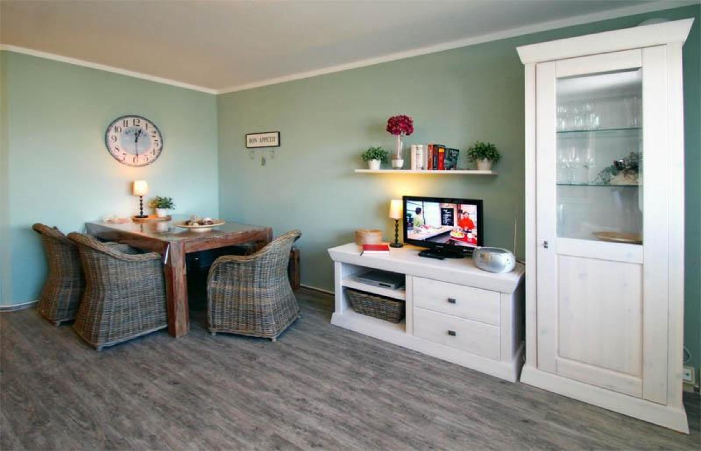 Die gemütliche, im Landhausstil eingerichtete Ferienwohnung in der zweiten Etage verfügt über 2 Zimmer. Es handelt sich um eine Eckwohnung im Obergeschoss.
