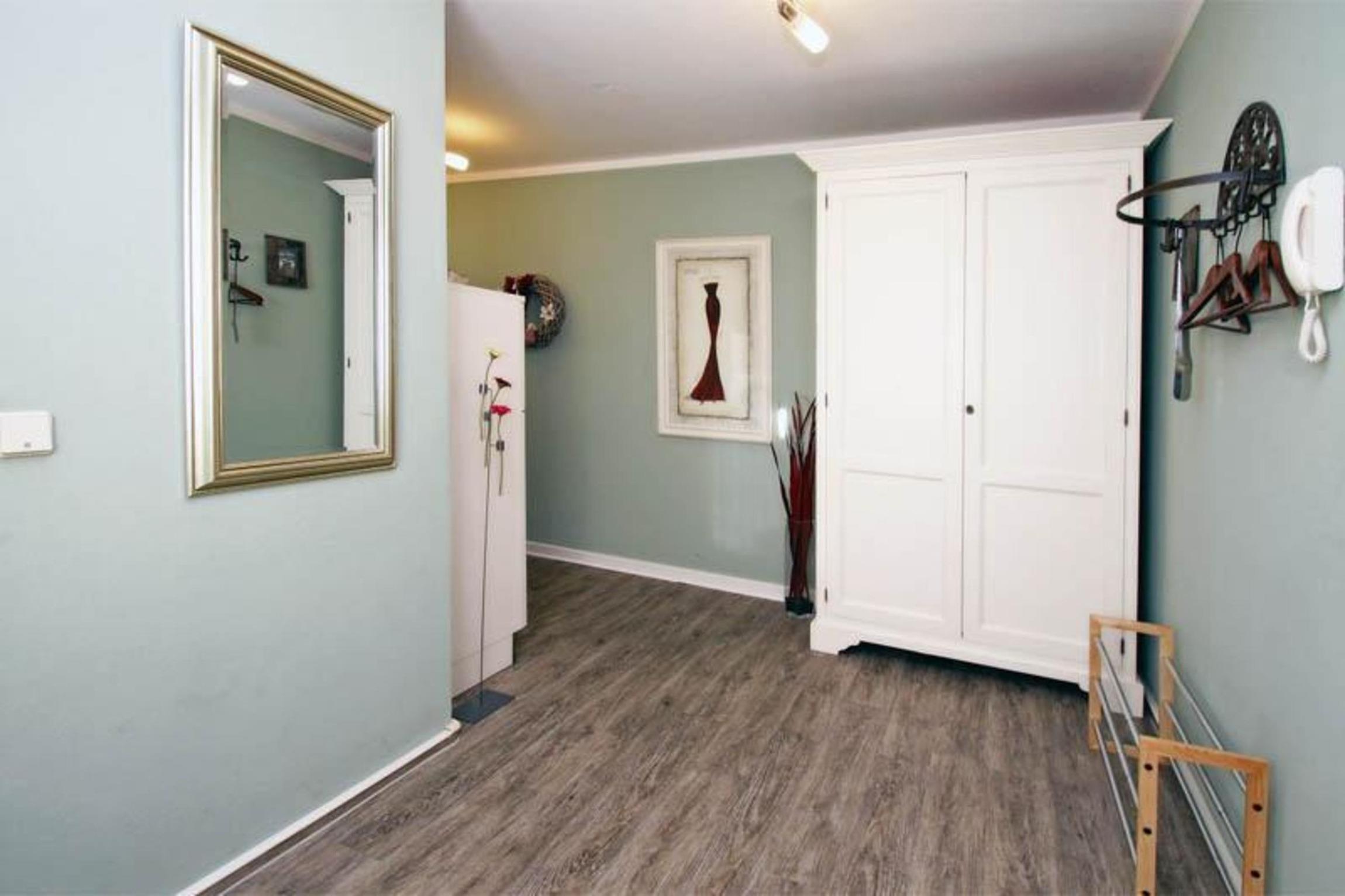 Im Flur befindet sich neben einer Garderobe ein großer Schrank mit ausreichend Stauraum für Ihre Urlaubsgarderobe.