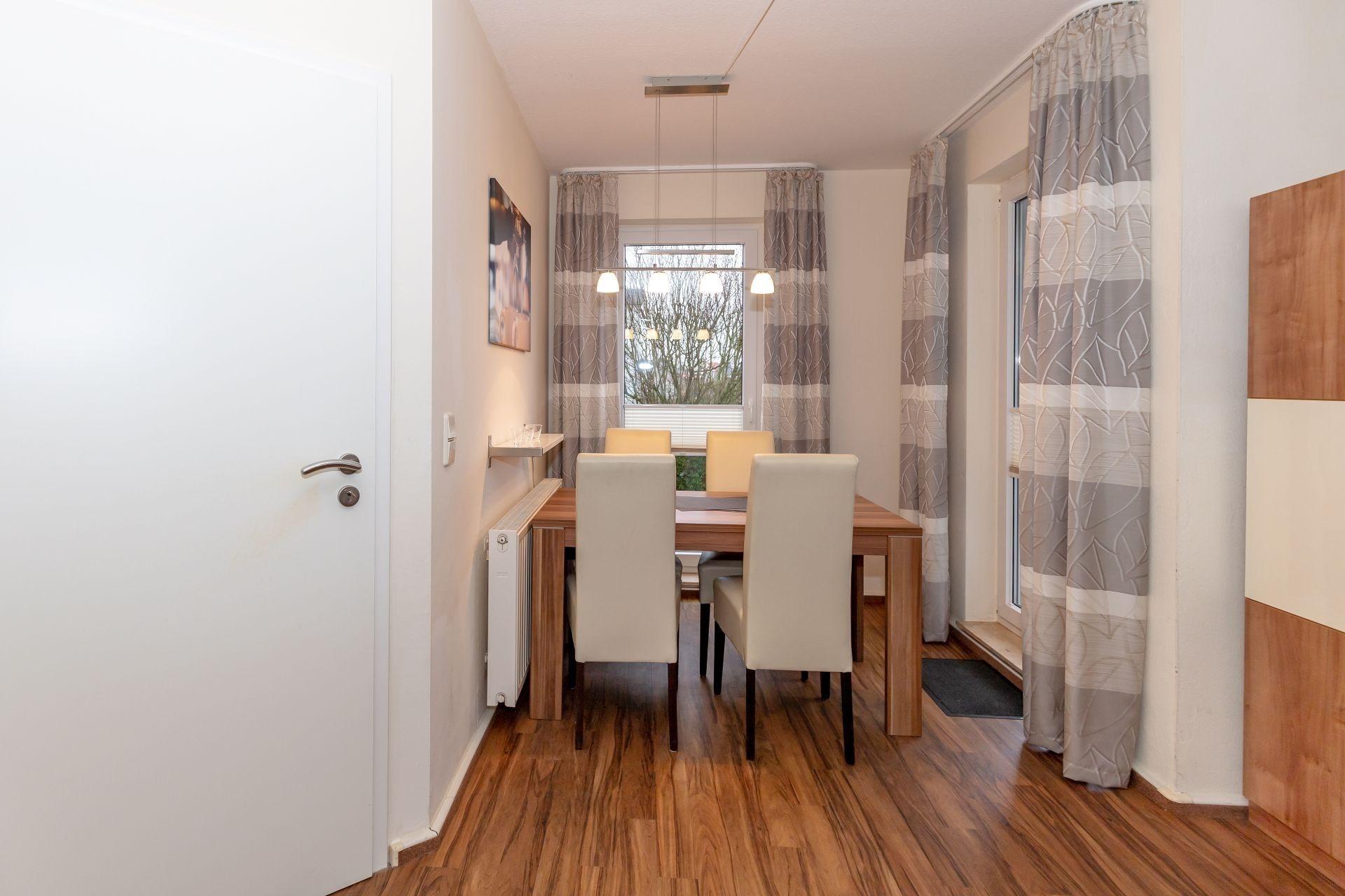An den Wohnbereich grenzt die Küchenzeile, die voll ausgestattet ist. Hier finden Sie alle Bequemlichkeiten einer modernen Küche. Schnell sind Ihre Mahlzeiten zubereitet, die Sie gemeinsam am großen Esstisch einnehmen können.