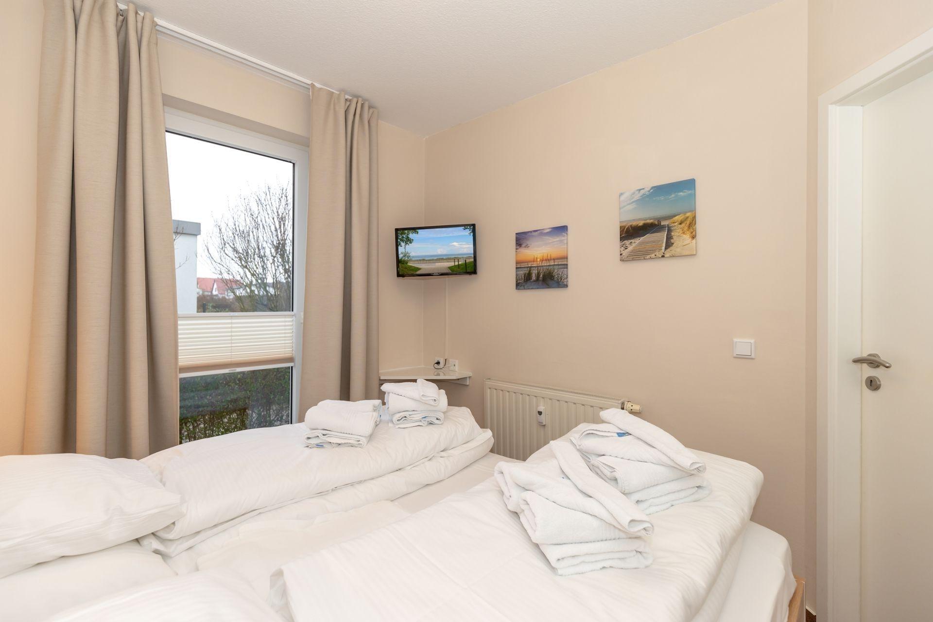 Ein zusätzliches Fernsehgerät im Schlafzimmer rundet die Behaglichkeit in diesem Bereich ab.