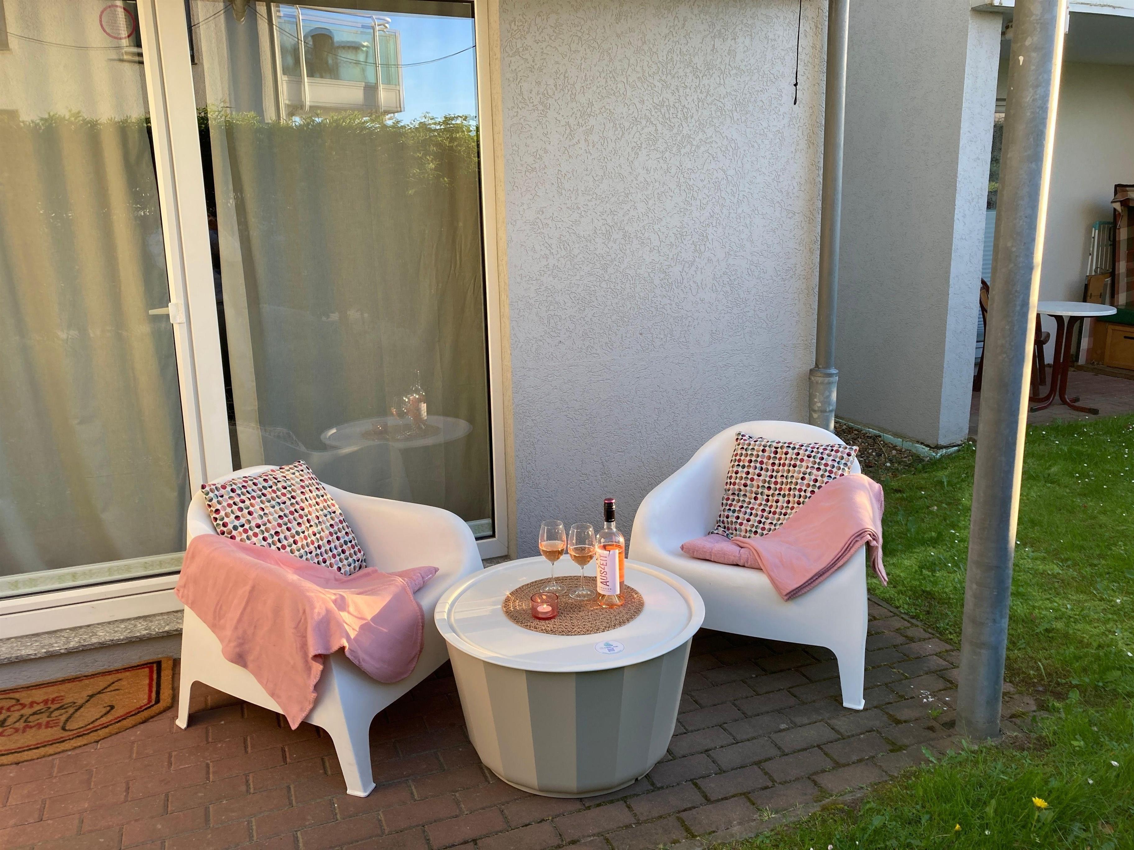 An Ihre Wohnung grenzt eine windgeschützte Terrasse zur Nordseite, die Sie direkt von Ihrem Wohnzimmer aus betreten können. Hier finden Sie komfortables Mobiliar, welches zu einem gemütlichen Zusammensitzen einlädt. Eine kleine Wohlfühloase erwartet Sie hier.