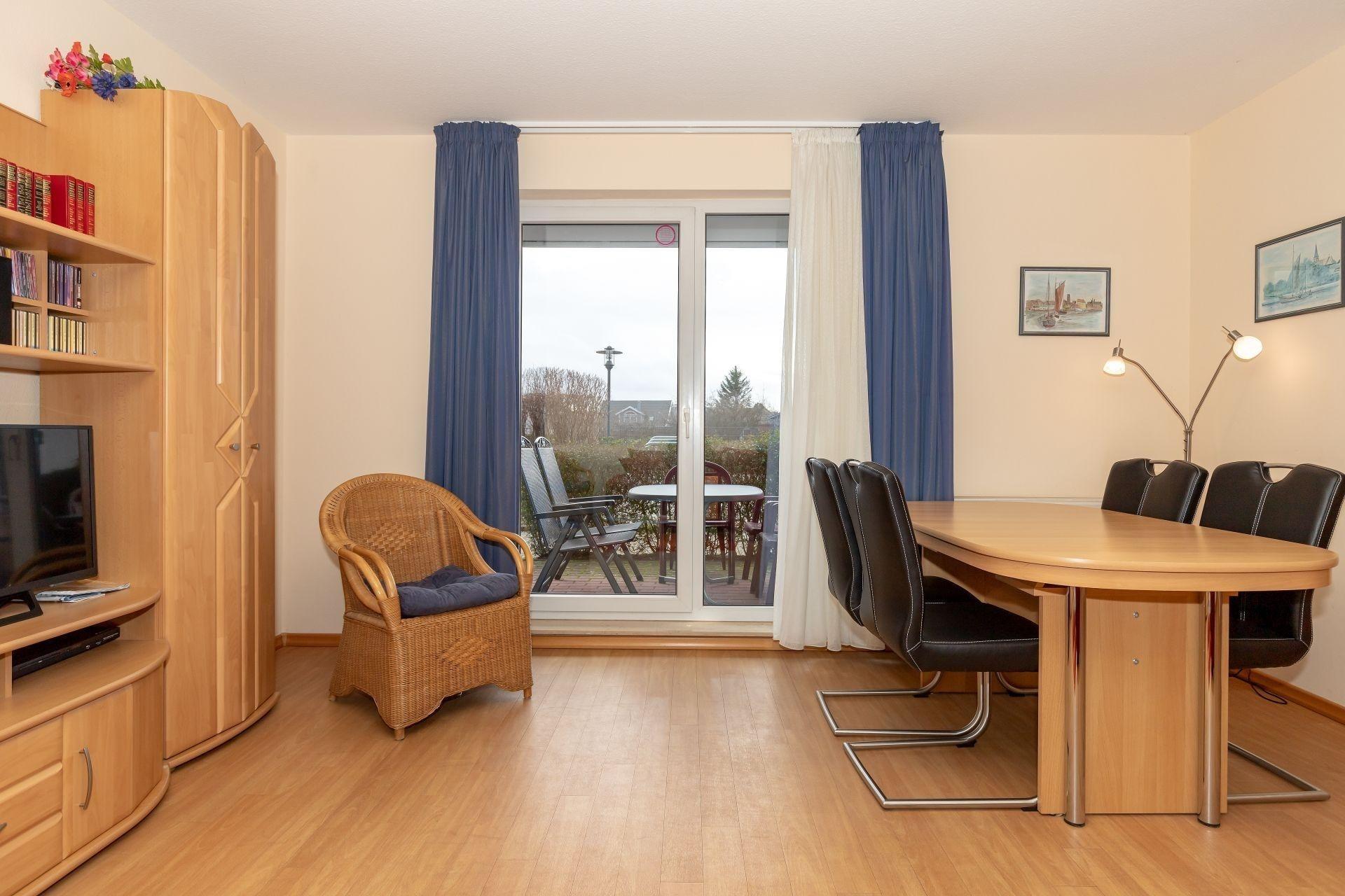 An Ihre Wohnung im Erdgeschoss grenzt eine Terrasse, welche Sie direkt von Ihrem Wohnzimmer aus betreten können. Das Besondere ist die Südausrichtung, so dass Sie den ganzen Tag über die Sonne genießen können und und den Sonnenuntergang am Abend. Sie ist ausgestattet mit einem Tisch und 4 Stühlen. Eine Wohlfühloase für die ganze Familie.