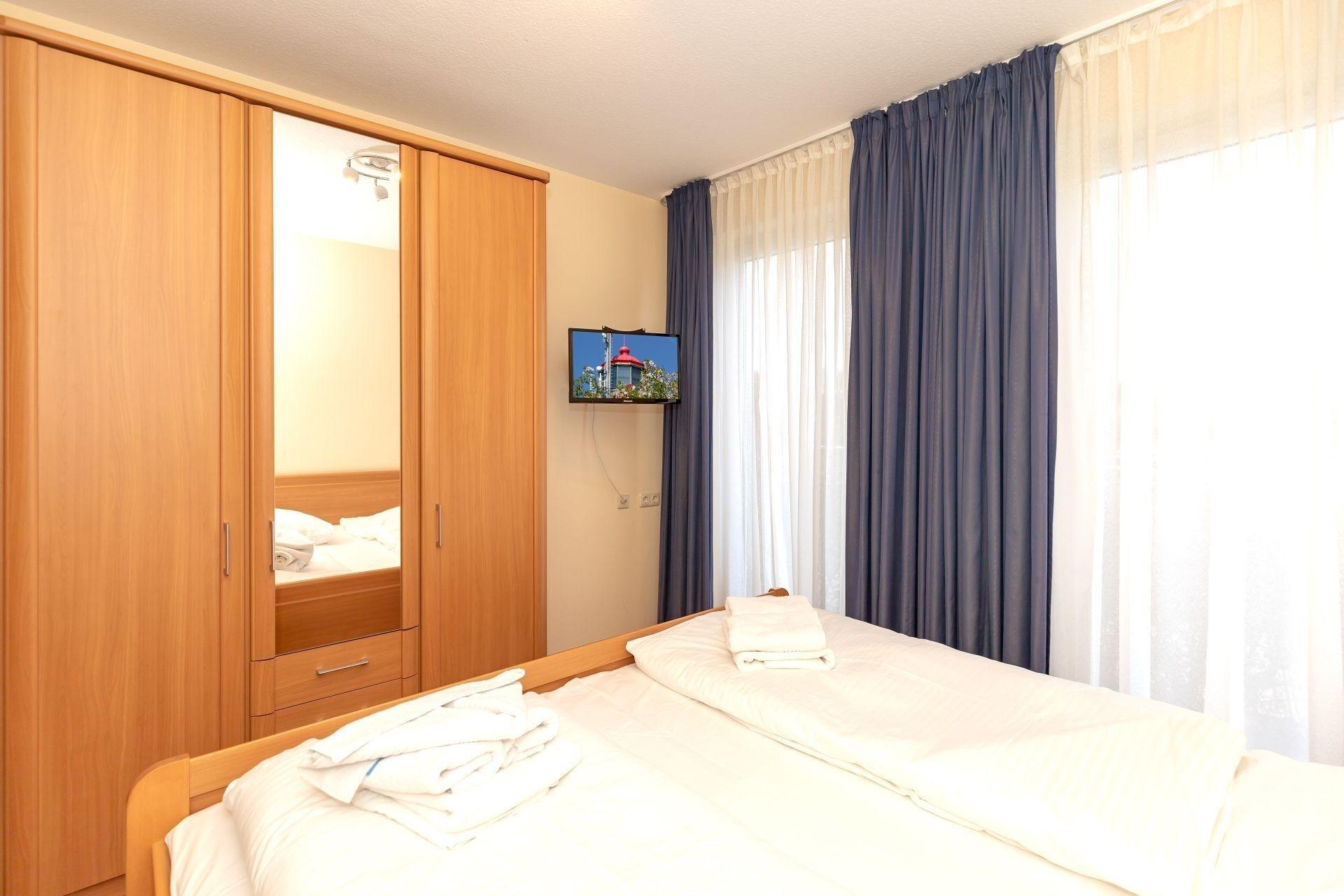 Die Wohnung verfügt über ein separates Schlafzimmer mit Doppelbett und dazugehörigem Kleiderschrank. Es können aber bequem auch 4 Personen "einziehen", da die hochwertige Wohnlandschaft im Wohnbereich auch als Schlafsofa genutzt werden kann.