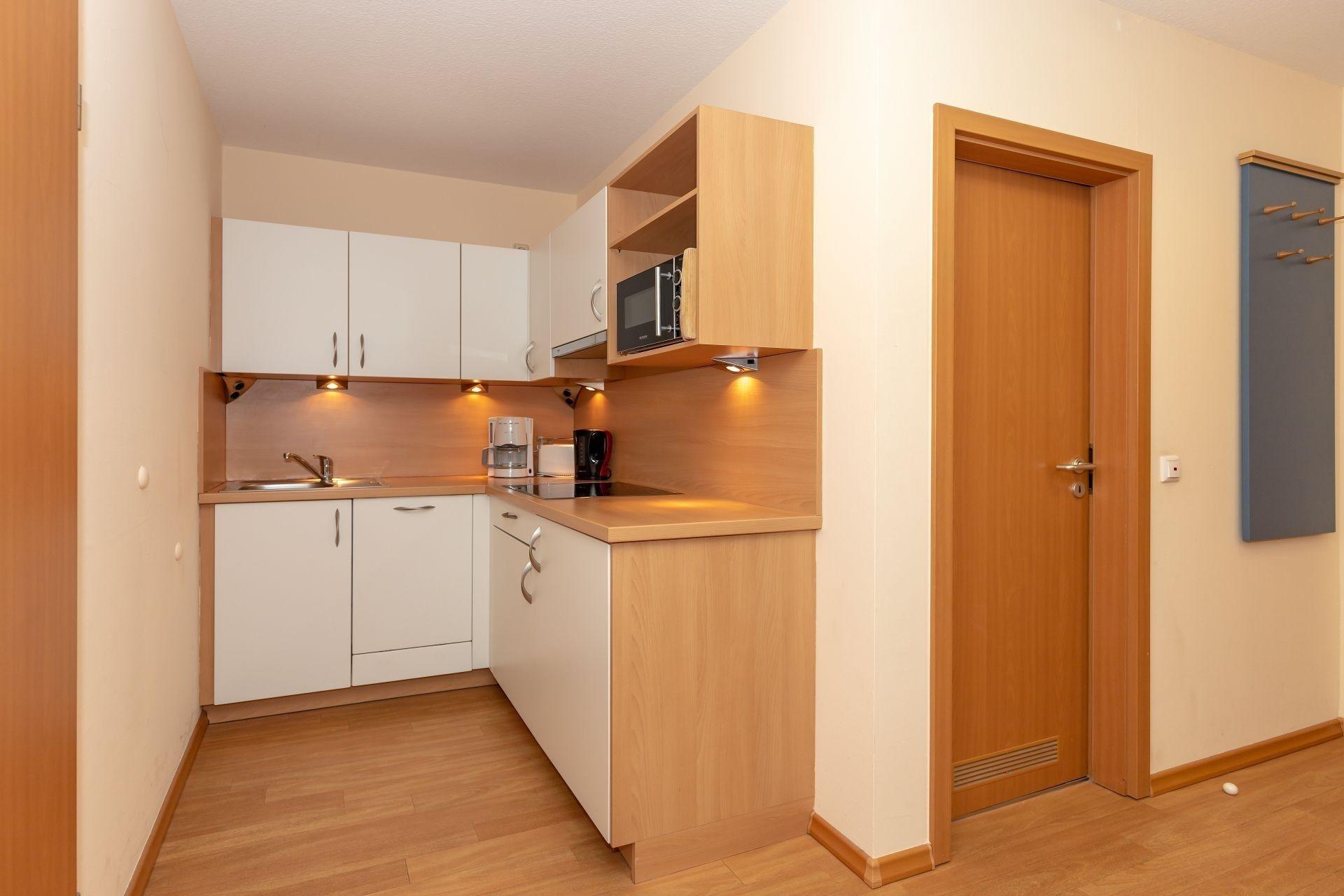 An den Wohnbereich grenzt die kleine Küche, welche nach neuestem Komfort voll ausgestattet ist. Hier stehen Ihnen alle Bequemlichkeiten einer hellen, modernen Küche zur Verfügung.