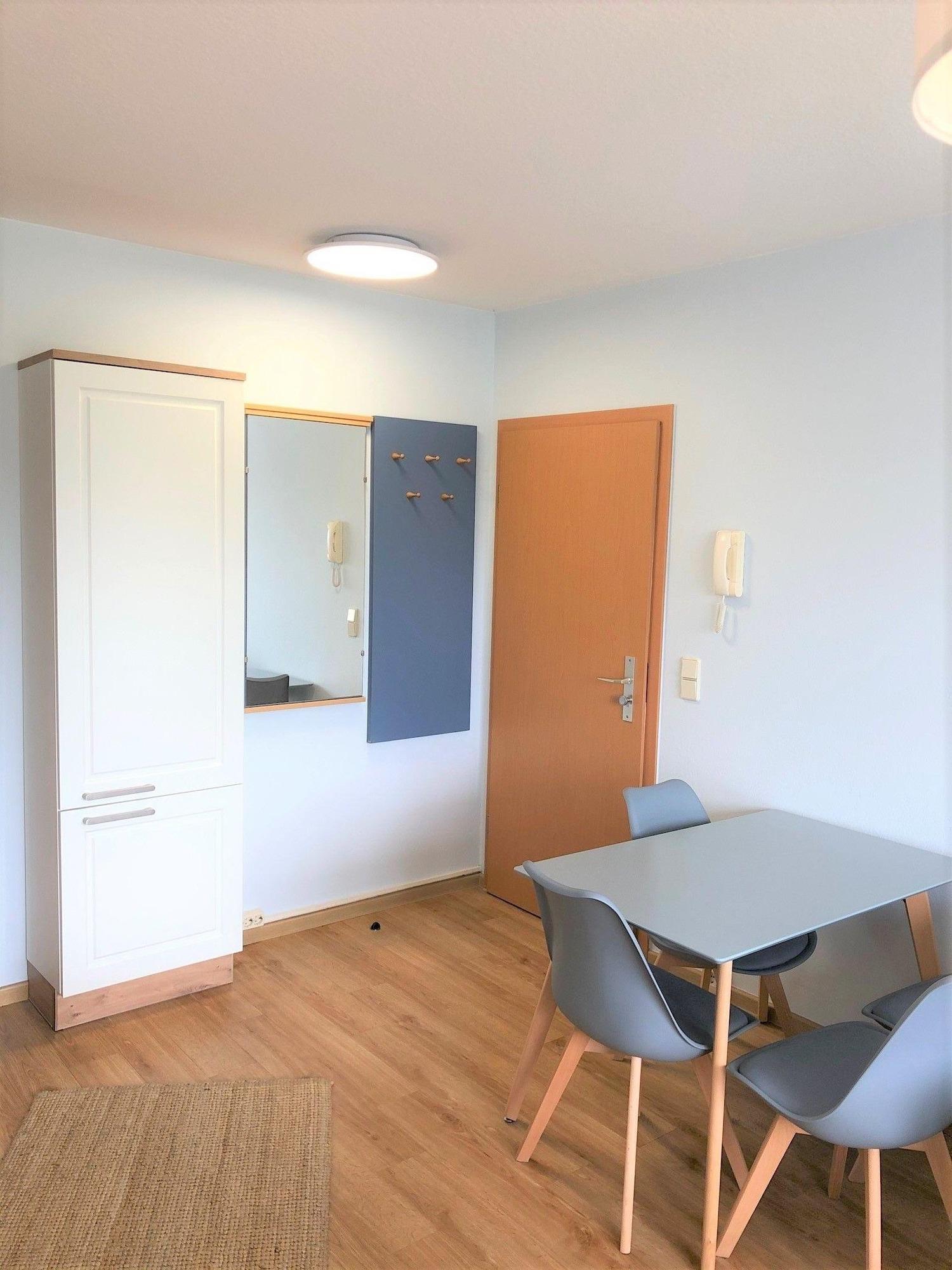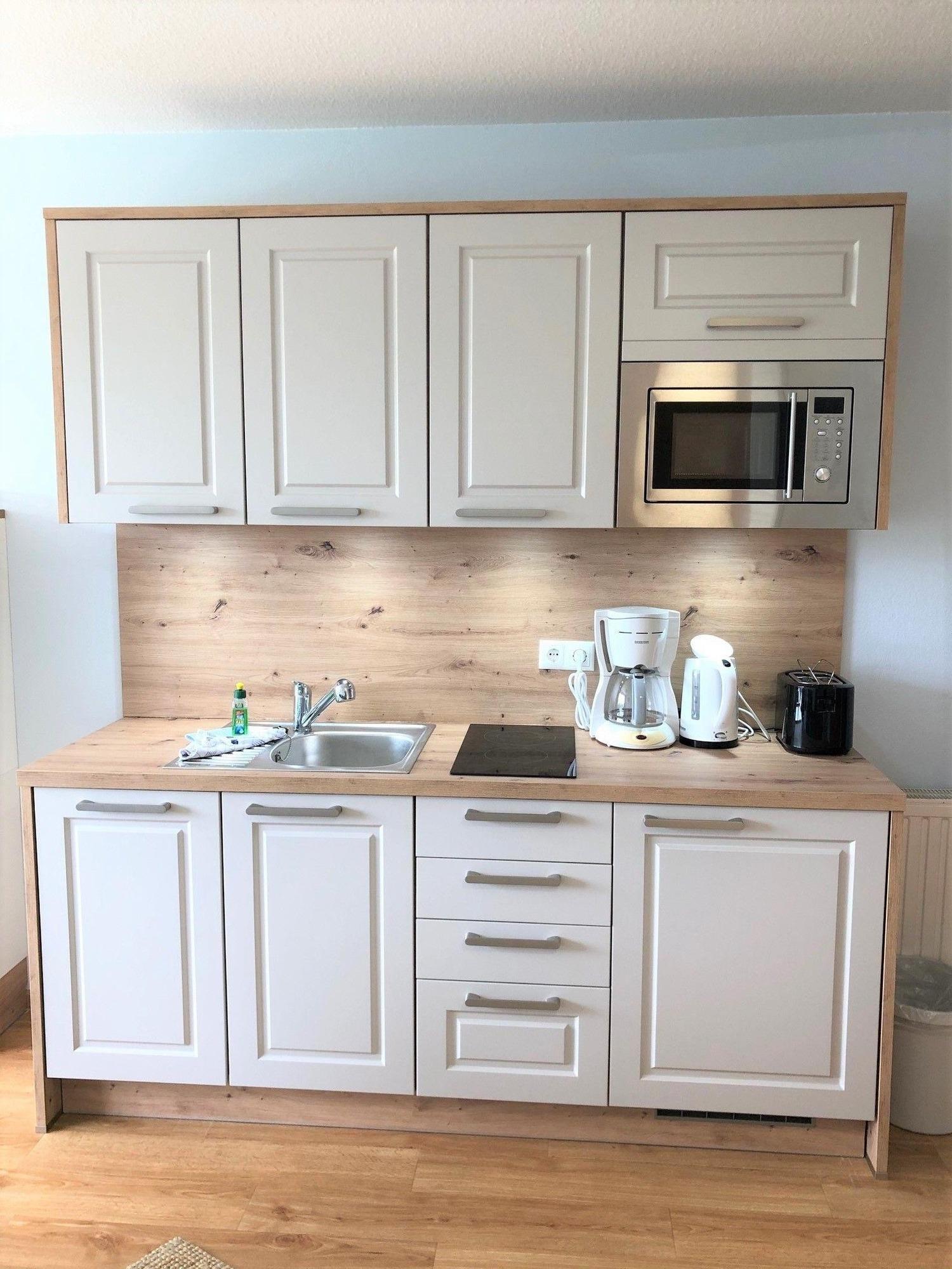 An den Wohnbereich grenzt die kleine, voll ausgestattete Küchenzeile, hier können Sie einfach und schnell Ihre Lieblingsmahlzeit zubereiten, die Sie gemeinsam am vorhandenen Esstisch einnehmen können.