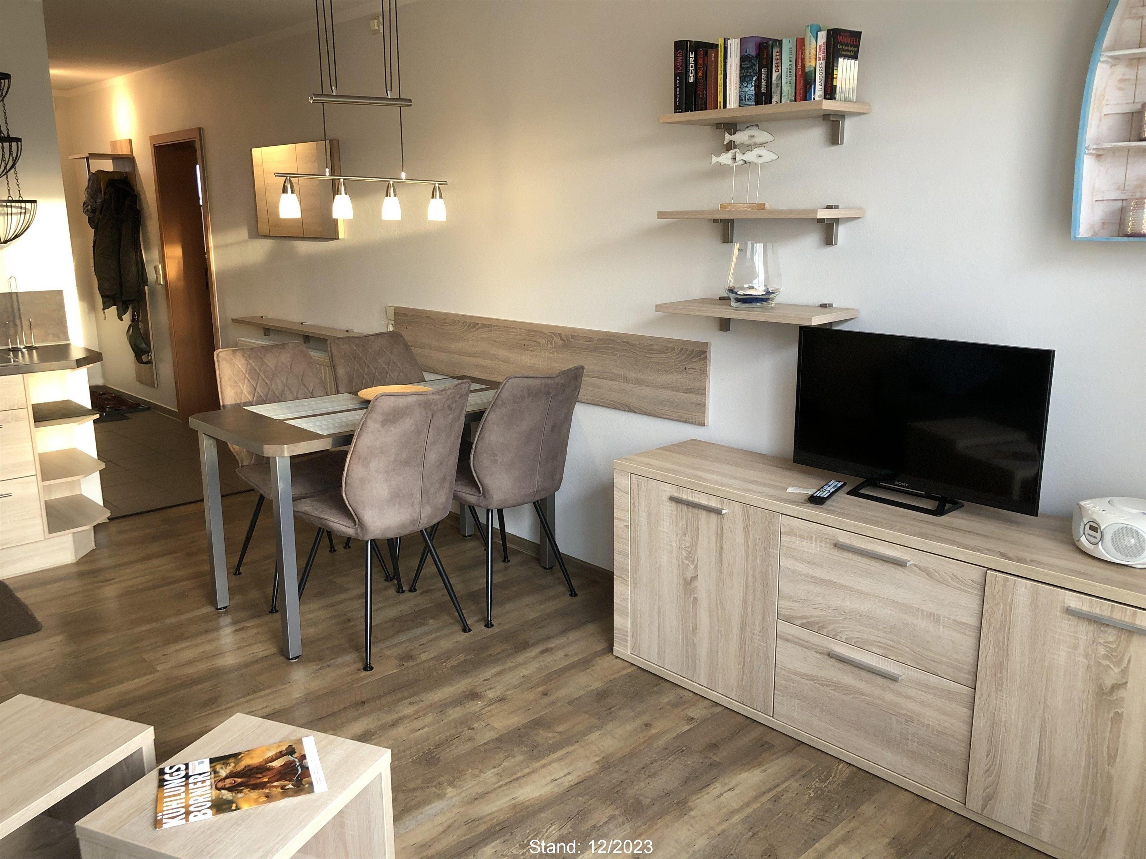 Ihre Mahlzeiten können Sie gemeinsam am vorhandenen Esstisch mit 4 Stühlen einnehmen.