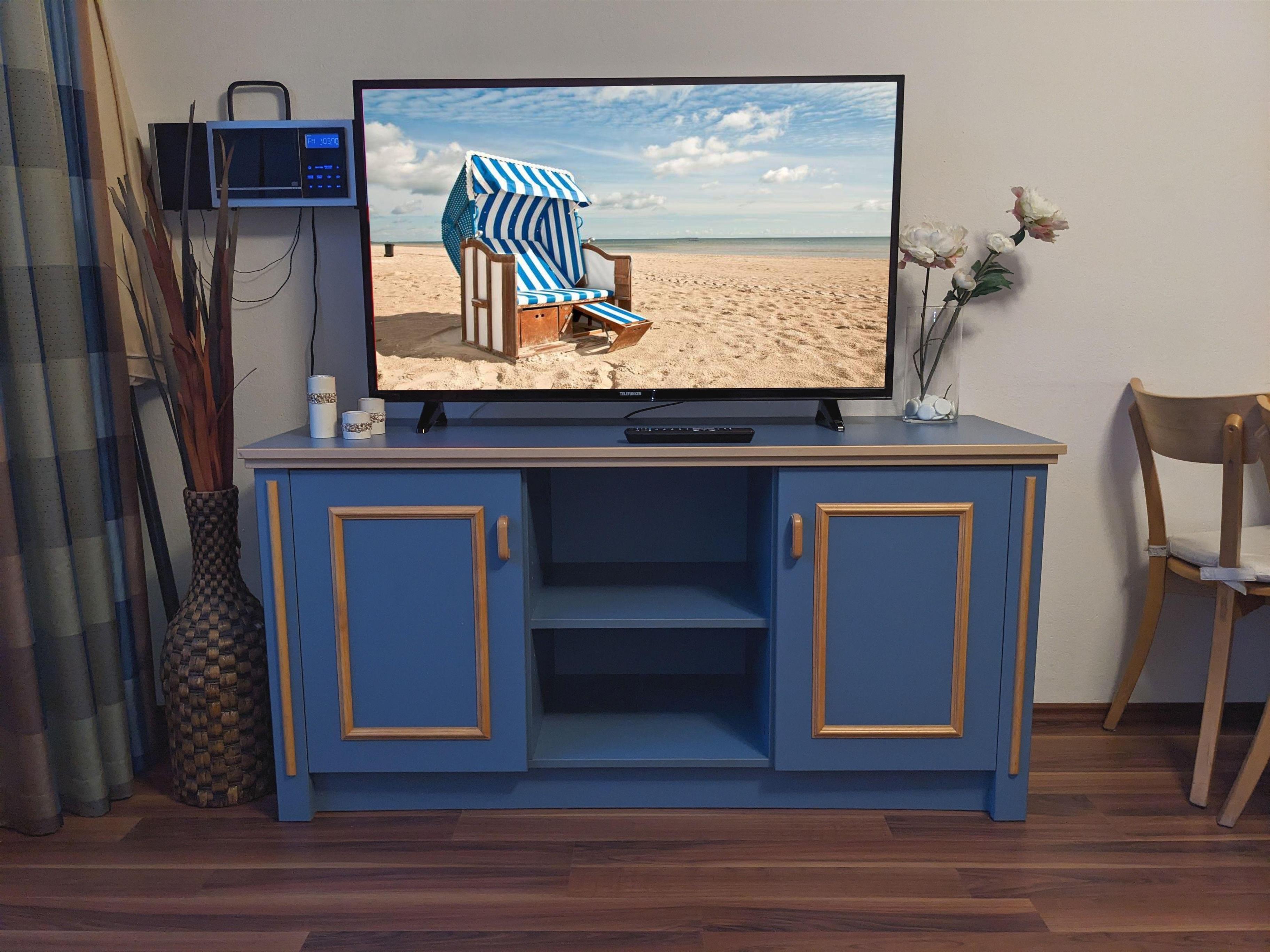 Freuen Sie sich auf entspannte Stunden im behaglichen Wohnbereich. Dieser verfügt über eine bequeme Couchgarnitur, die für die Nacht einen Schlafplatz für 2 Personen bietet. Am Abend können Sie hier gemütlich beisammensitzen und bei einem leckeren Getränk einen spannenden Tag gemeinsam Revue passieren lassen. Für Ihre Unterhaltung sorgt ein großer Flachbild-Fernseher.