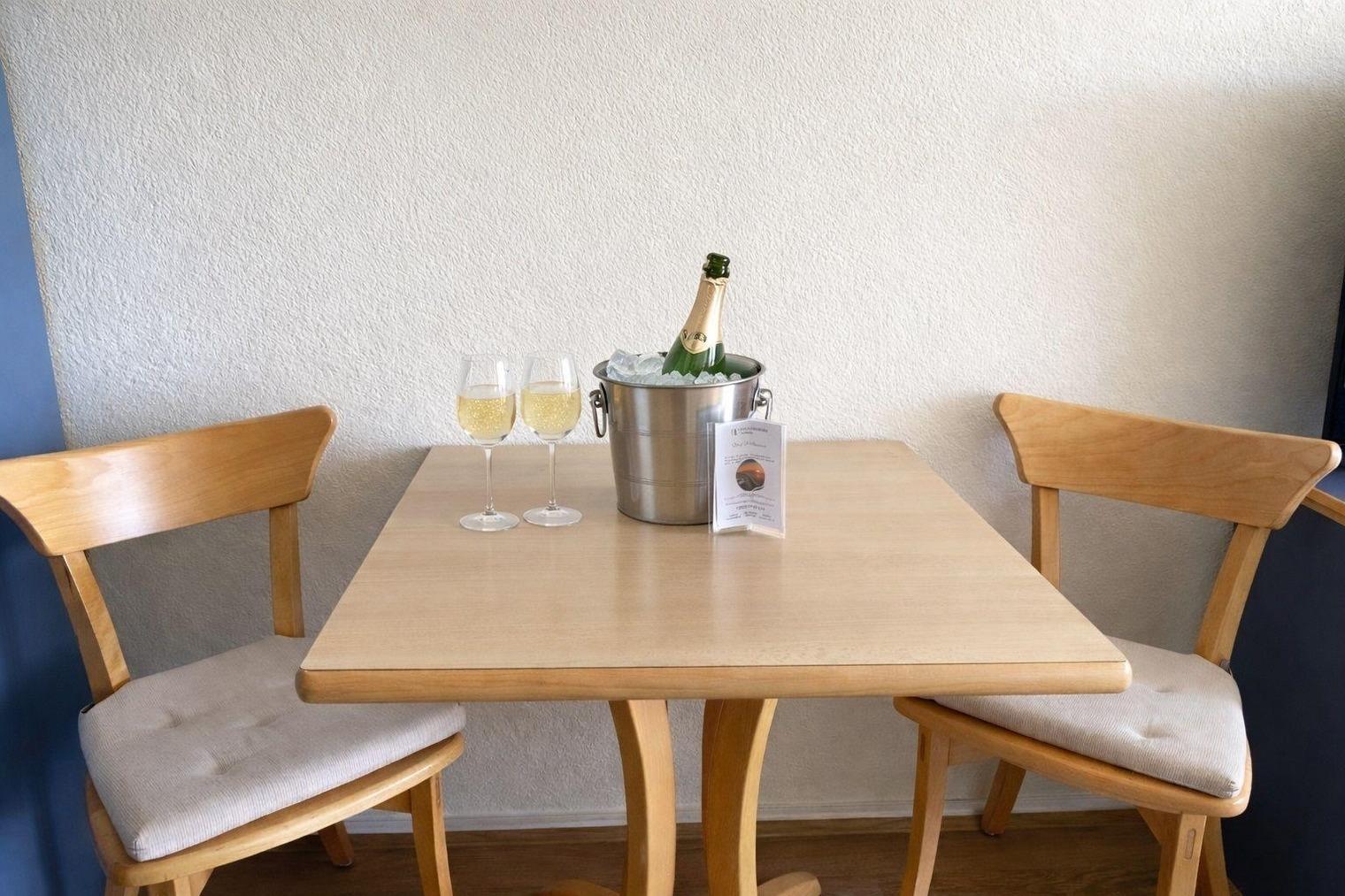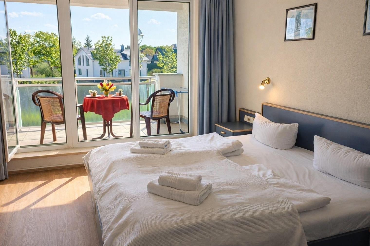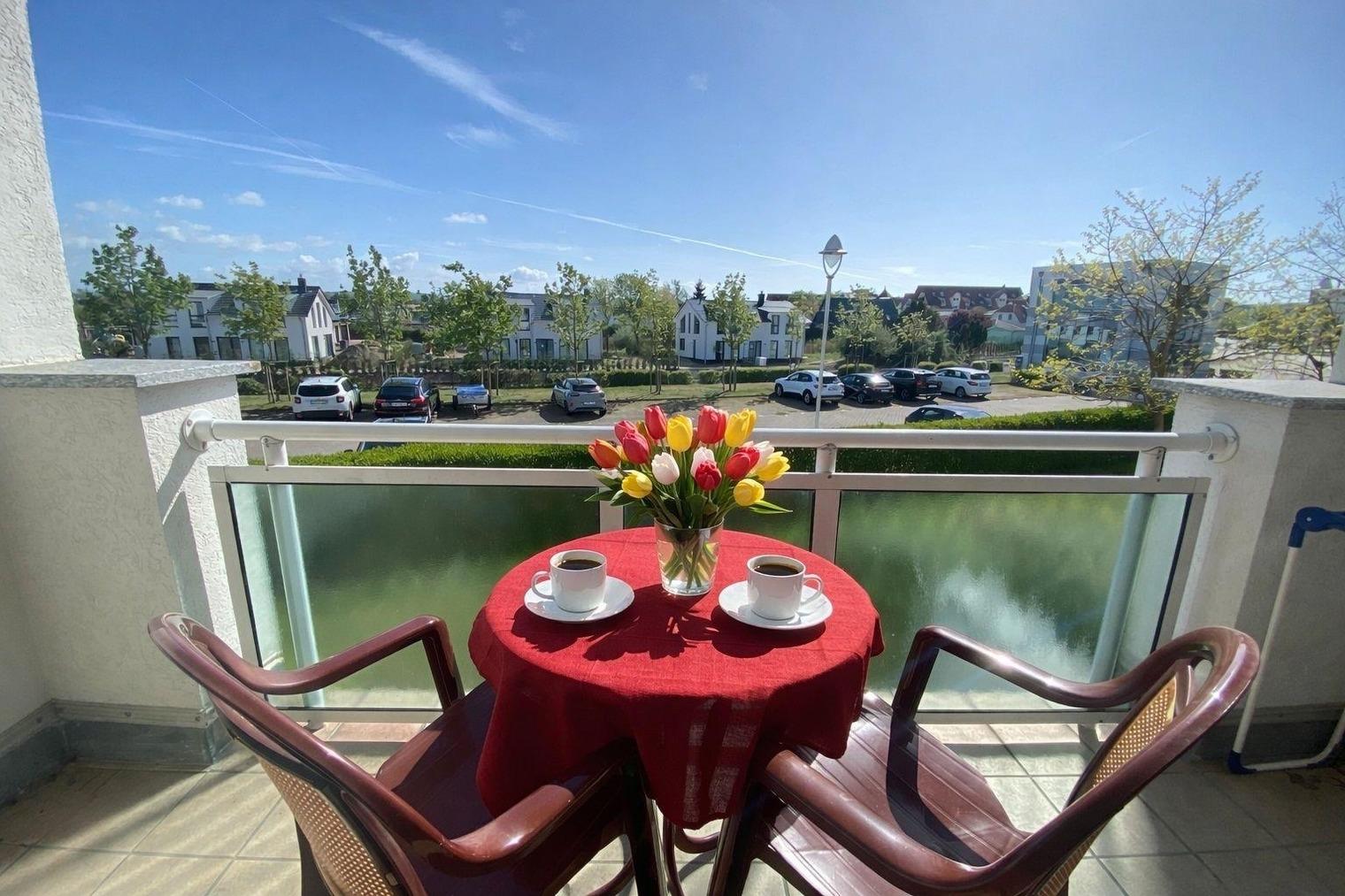 An Ihre Wohnung grenzt ein großer Südbalkon, der mit hübschen Balkonmöbeln ausgestattet ist. Hier können Sie "Sonne satt" genießen und am Abend bei einem leckeren Getränk einen erlebnisreichen Tag gemütlich ausklingen lassen. So starten Sie ausgeruht und voller Tatendrang in einen weiteren aufregenden Urlaubstag.