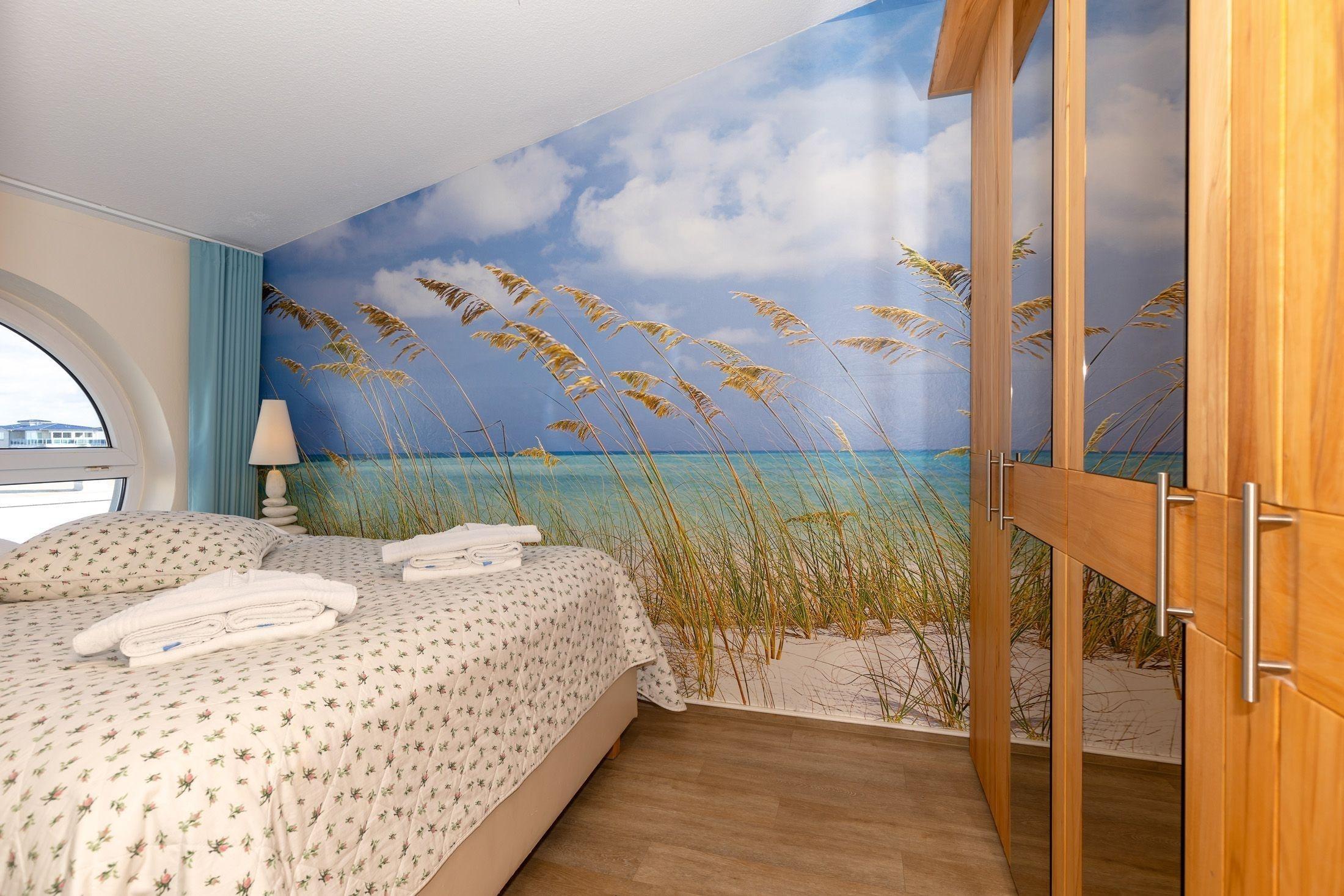 Das separate Schlafzimmer ist mit einem französischen Doppelbett (1,40m) ausgestattet. Hier erleben Sie einen erholsamen Schlaf. So sind Sie für einen weiteren aufregenden Urlaubstag bestens gerüstet. Für Ihre Urlaubsgarderobe steht Ihnen ein neuer geräumiger Kleiderschrank zur Verfügung.