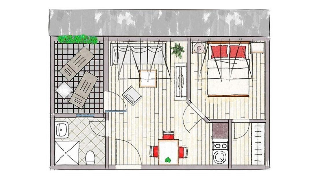 An Ihre Wohnung grenzt eine wind- und blickgeschützte Sonnenloggia zur sonnigen Südseite, die Sie direkt vom Wohnzimmer aus betreten können. Sie ist modern und gemütlich möbliert, sodass Sie hier viel Sonne tanken oder abends bei einem Glas Wein den Tag ausklingen lassen können.