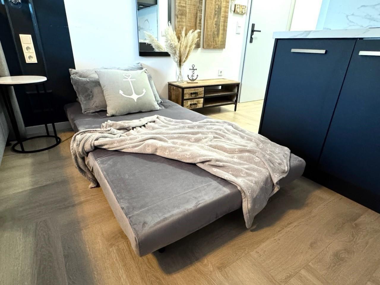 Eine weitere Schlafmöglichkeit bietet der gemütliche Sessel, welcher auszuklappen geht.