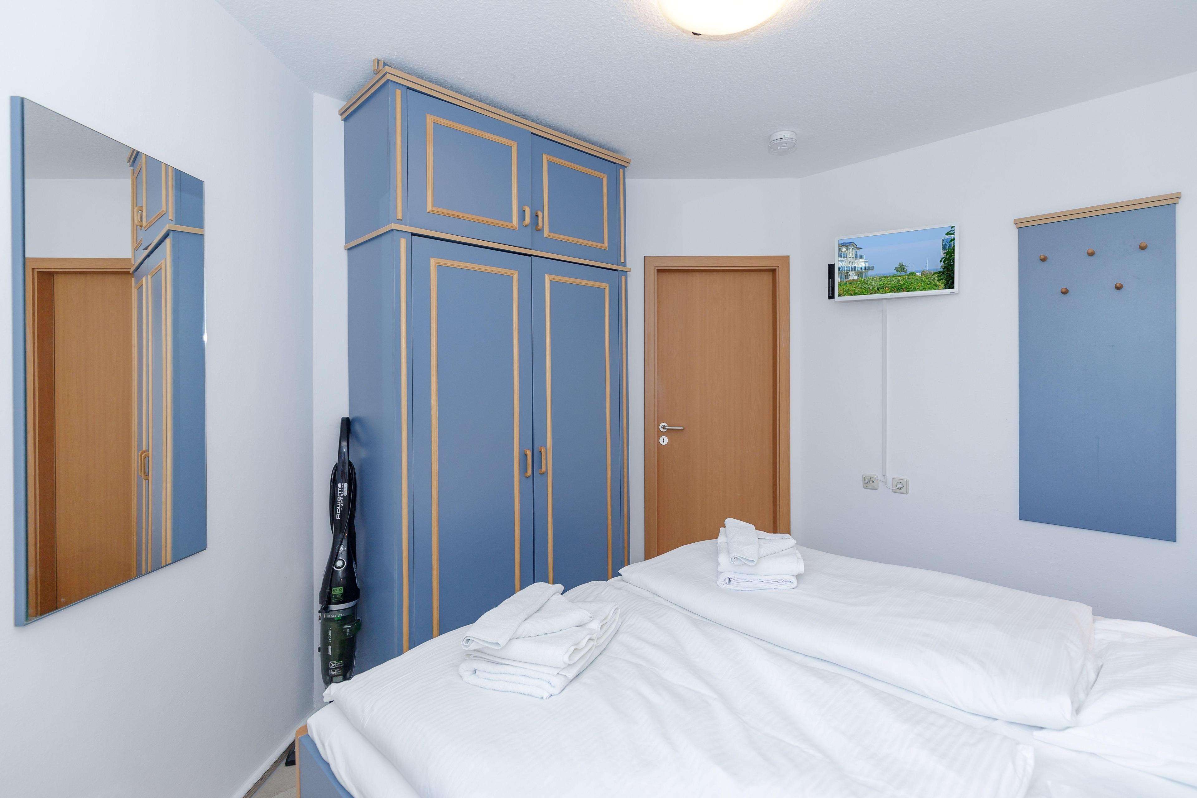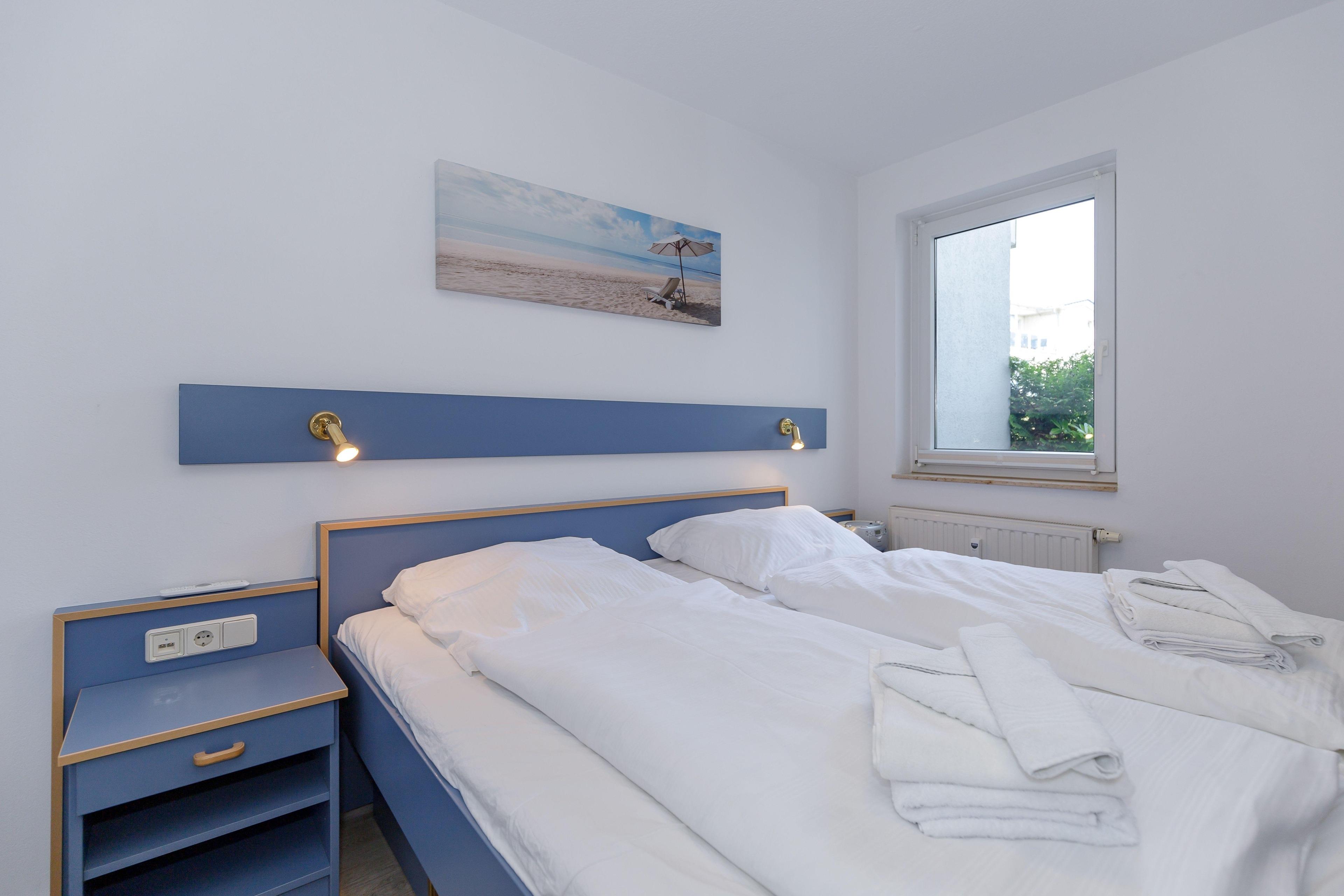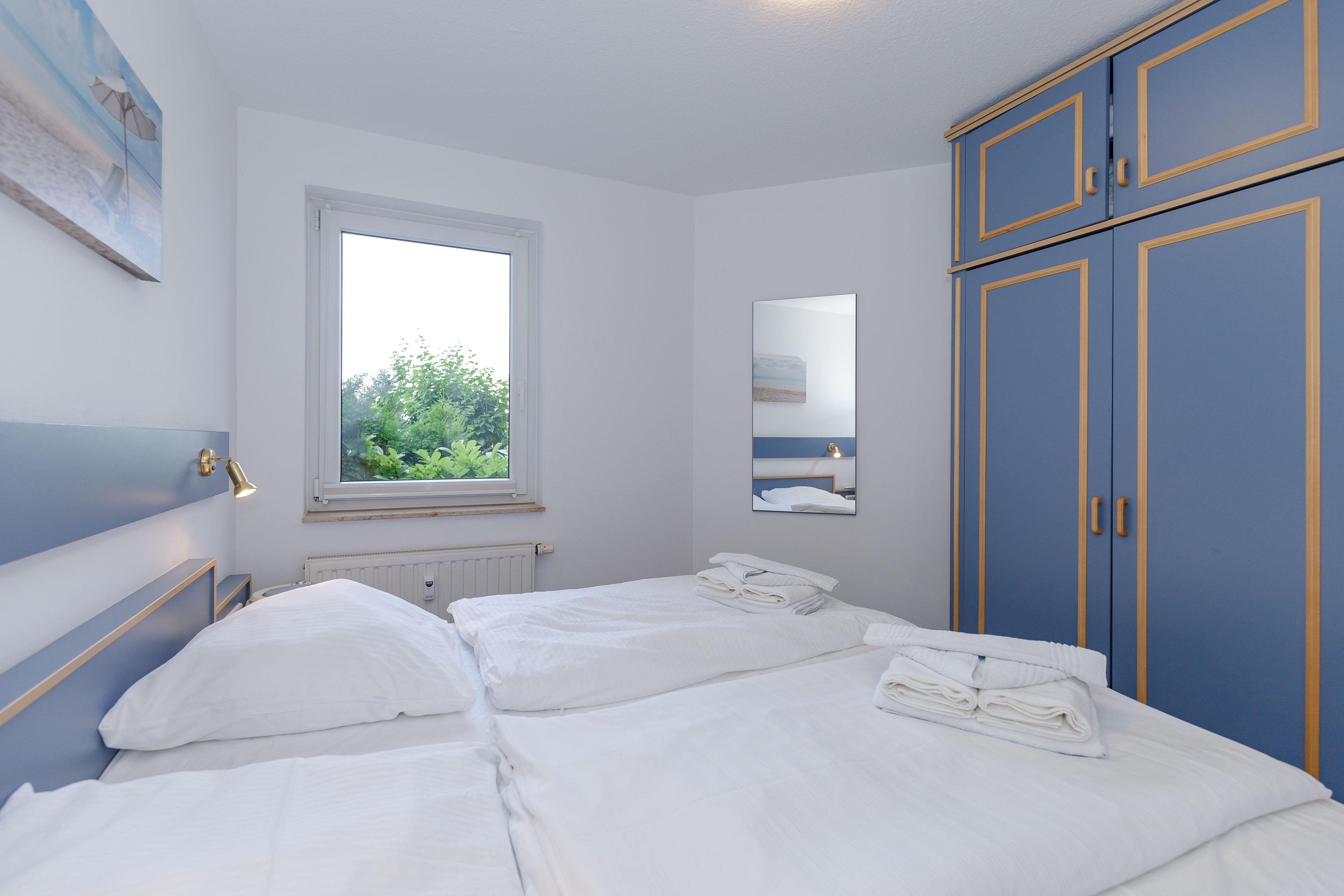 Das separate Schlafzimmer ist mit einem bequemen Doppelbett sowie einem geräumigen Kleiderschrank für Ihre Urlaubsgarderobe eingerichtet.