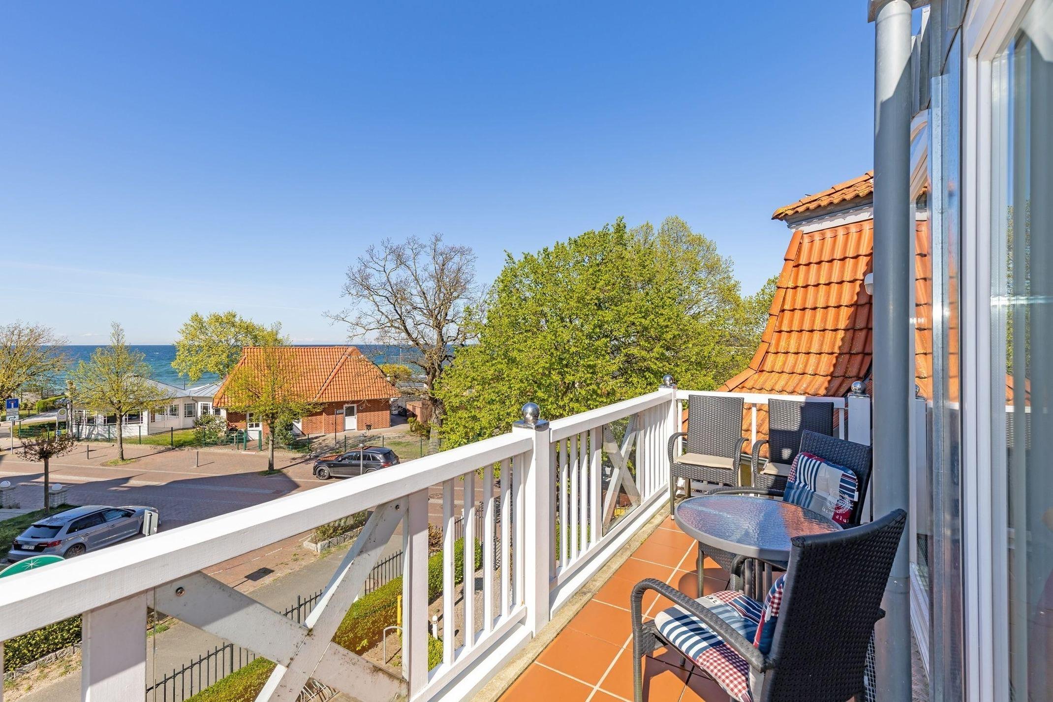 Die Wohnung besitzt einen charmanten Balkon, der nach Nord-West ausgerichtet ist. Genießen Sie in geselliger Runde den einzigartigen Blick auf die Ostsee. Urlaubs-Feeling pur!