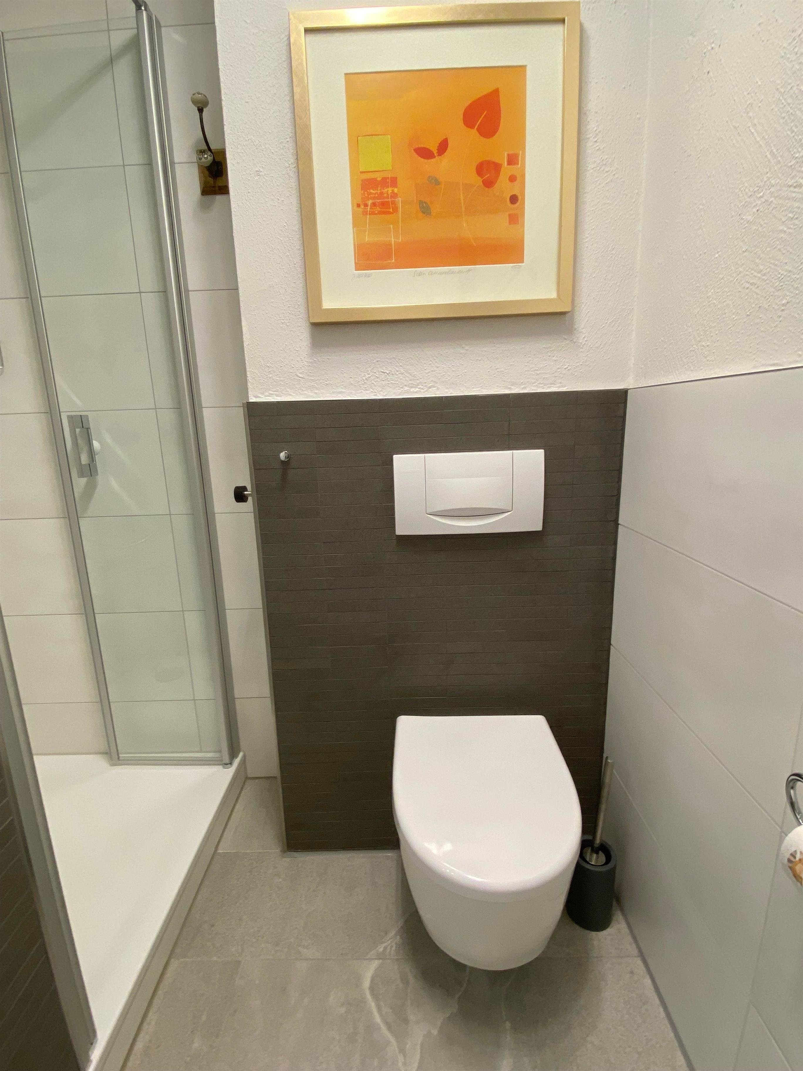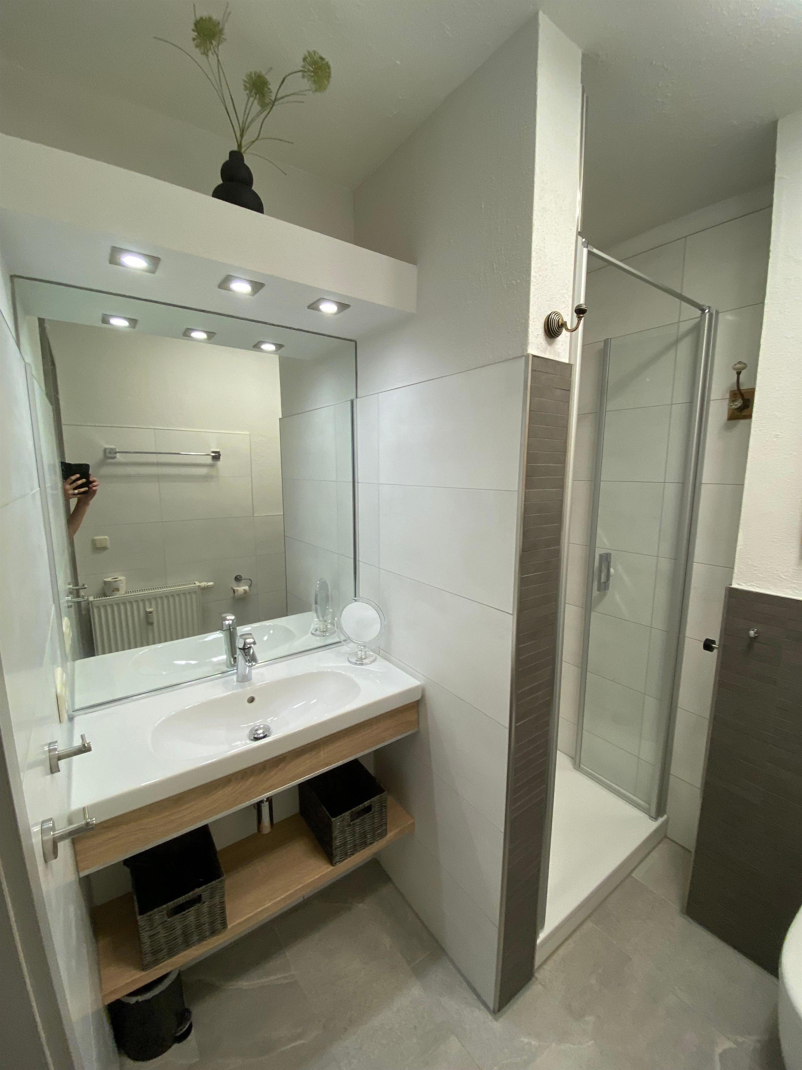 Das neu gestaltete Bad (Fön vorhanden) bietet eine moderne und hochwertige Ausstattung.