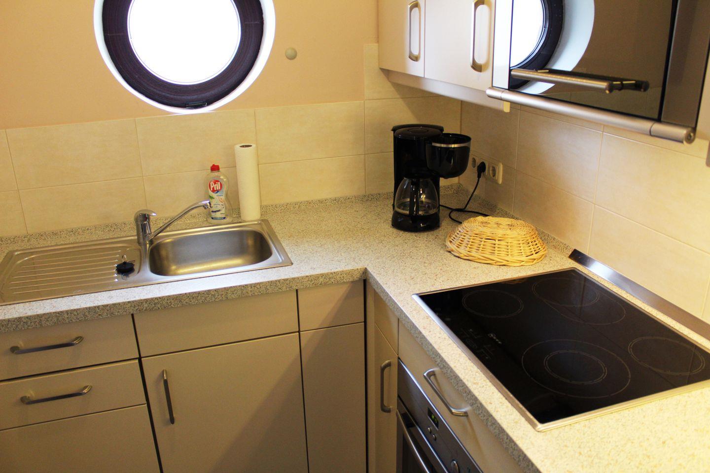 In der modernen und vollständig ausgestatteten, geschlossenen Küche finden Sie neben einem Ceranherd auch Backofen, Mikrowelle, Spülmaschine, Kühlschrank mit Gefrierfach, Kaffeemaschine, Wasserkocher, Toaster sowie sämtliche notwendigen Küchenutensilien, Geschirr und Besteck. Ein Esstisch im gemütlichen Essbereich lädt zu gemeinsamen Mahlzeiten ein. Die Unterkunft ist eine Nichtraucherwohnung und verfügt über eine Zentralheizung, sodass Sie ganzjährig angenehme Temperaturen erwarten dürfen.