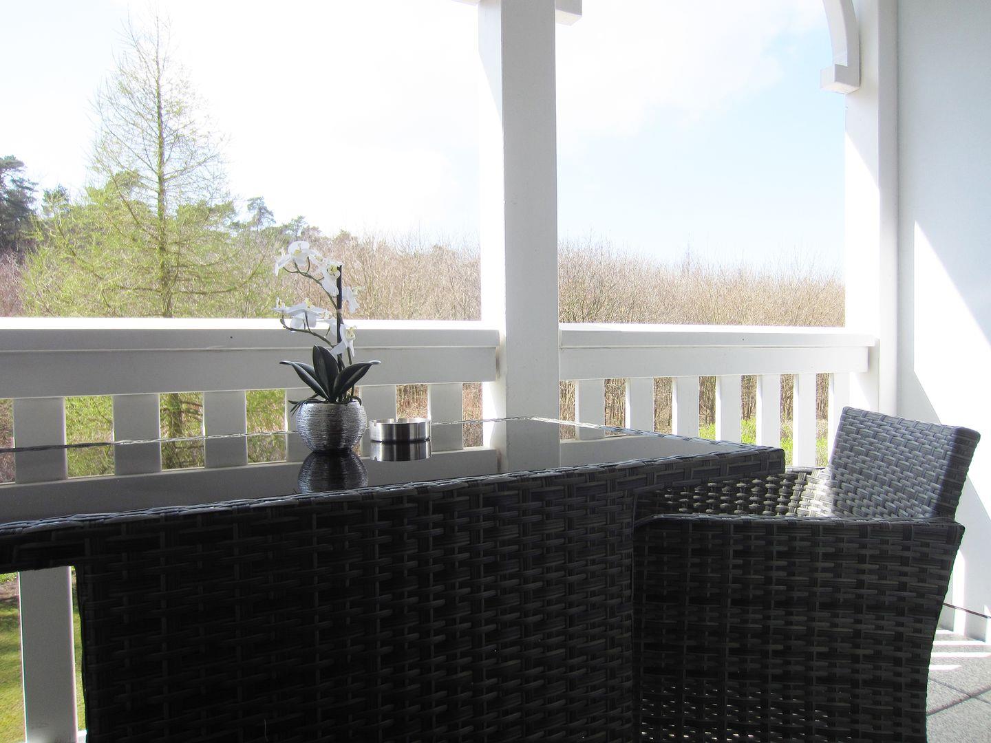 Moderne Ferienwohnung in Kühlungsborn mit überdachtem Balkon und Nähe zum Strand, ideal für Familien und Aktivurlauber.