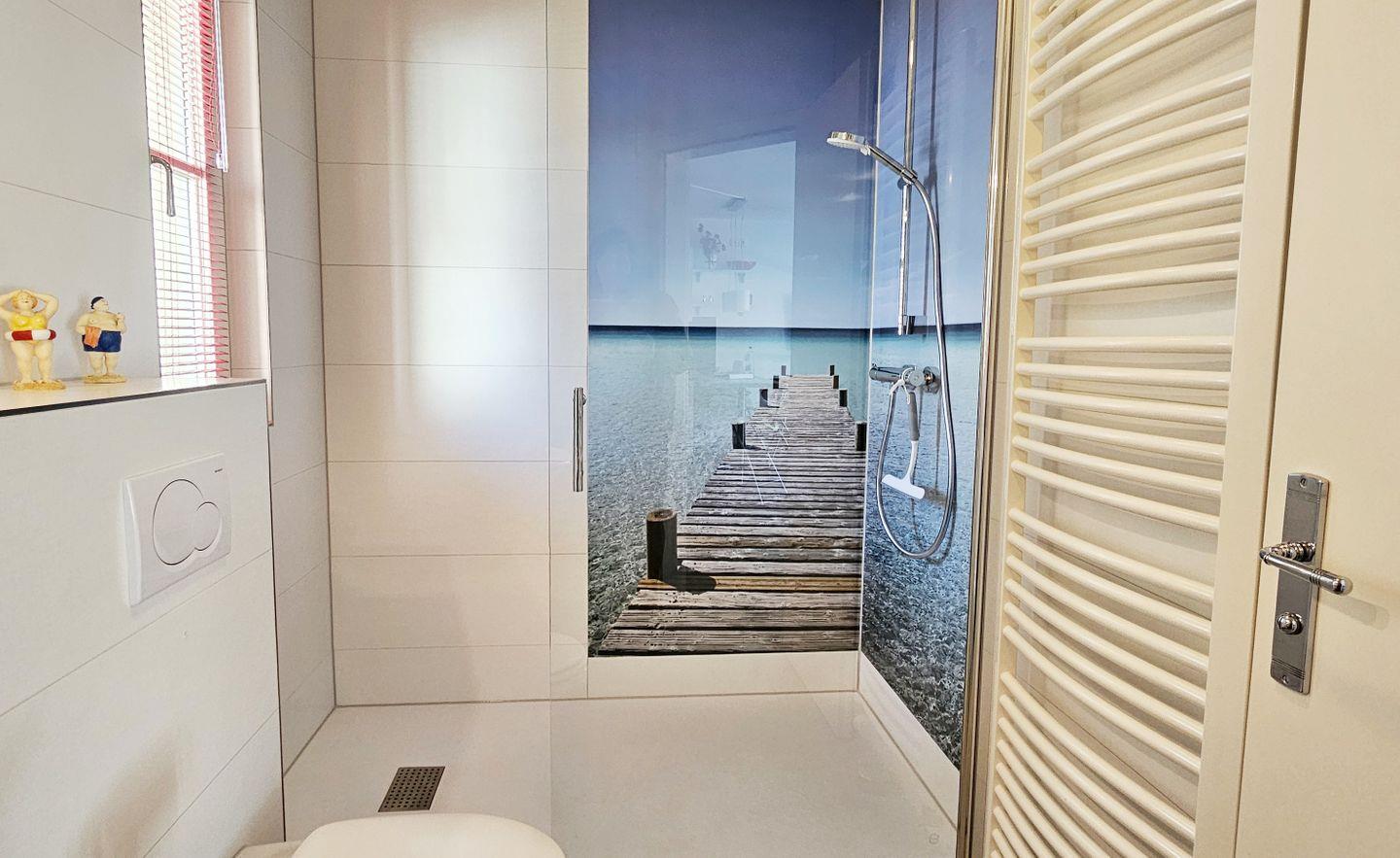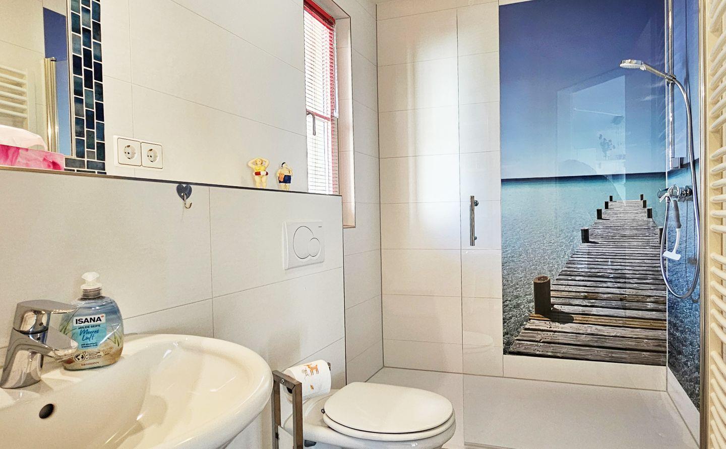 Für das individuelle Wohlbefinden lässt das Badezimmer keinen Wunsch offen: Es verfügt über eine Dusche, Waschbecken mit Spiegel sowie einen Kosmetikspiegel und Haartrockner. Das Tageslichtbad sorgt für eine freundliche Atmosphäre und angenehme Frische.