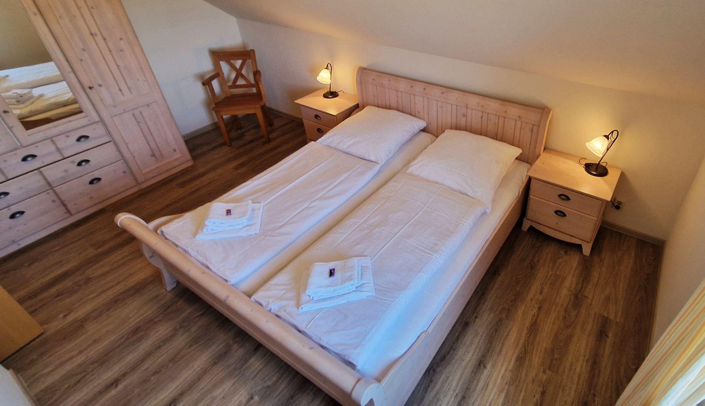 Das geräumige Wohnzimmer ist mit einer gemütlichen Sofaecke, einem Fernseher mit einer Bildschirmgröße zwischen 35 und 44 Zoll sowie WLAN ausgestattet. Der offene Wohn- und Essbereich begeistert mit einer voll eingerichteten Küche, die sämtliche Annehmlichkeiten für die Selbstversorgung bereithält: Ceranherd, Backofen, Mikrowelle, Spülmaschine, Kühlschrank mit Gefrierfach, Kaffeemaschine, Wasserkocher, Toaster sowie ausreichend Geschirr, Besteck und Küchenutensilien. Direkt angrenzend steht Ihnen ein Esstisch zur Verfügung – ideal für gemeinsame Mahlzeiten. Eine Garderobe, eine Kommode und ein Staubsauger sorgen für zusätzlichen Komfort und Funktionalität.