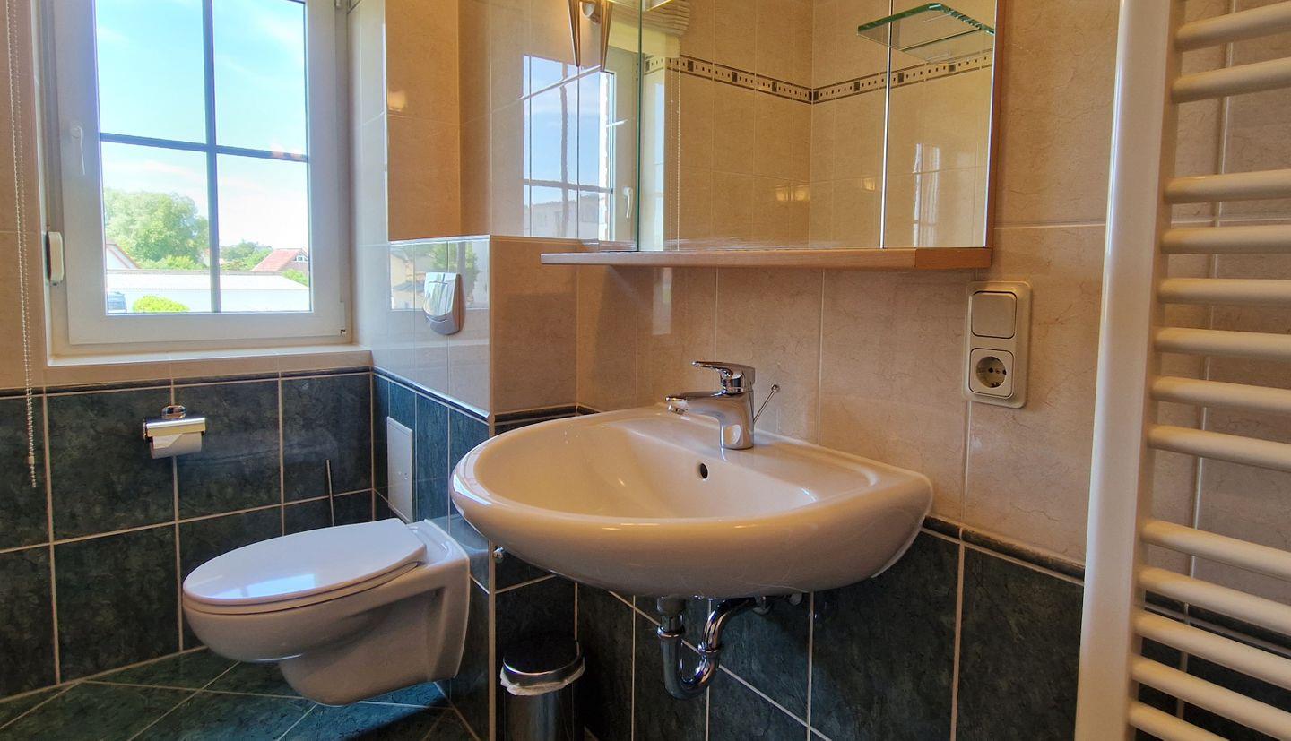 Die Unterkunft „Am Obstgarten" befindet sich in Kühlungsborn und bietet auf 70 m² eine angenehme Umgebung für Familien und Paare, die eine entspannte Auszeit an der Ostsee suchen. Die Wohnung liegt im ersten Stock und verfügt über drei Zimmer, darunter zwei separate Schlafzimmer mit Laminatboden, die insgesamt vier Schlafmöglichkeiten bieten. Ein modernes Bad mit Dusche, Waschbecken, Spiegel, Fenster, WC und warmem Wasser sorgt für den nötigen Komfort während Ihres Aufenthalts.