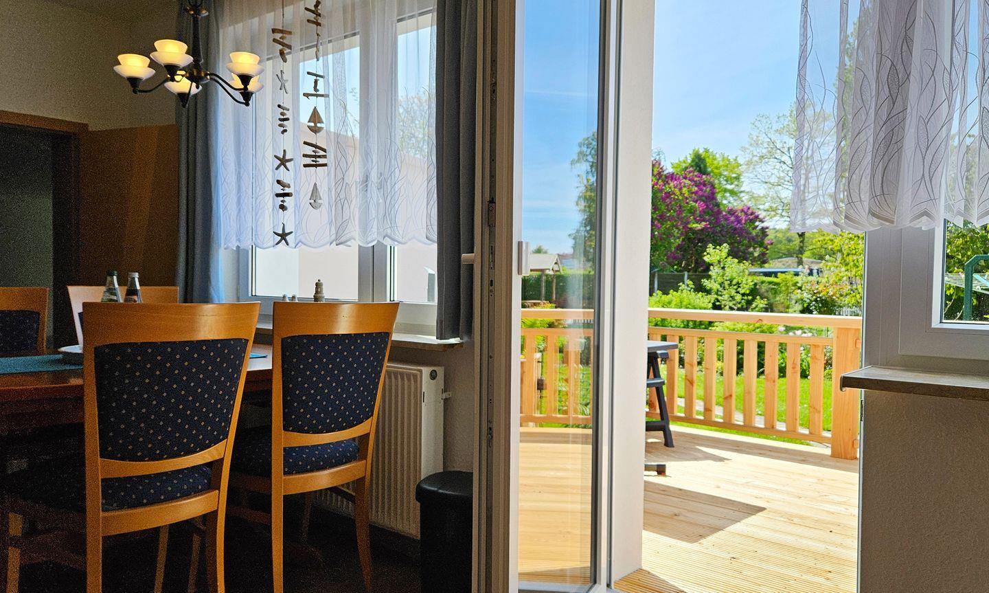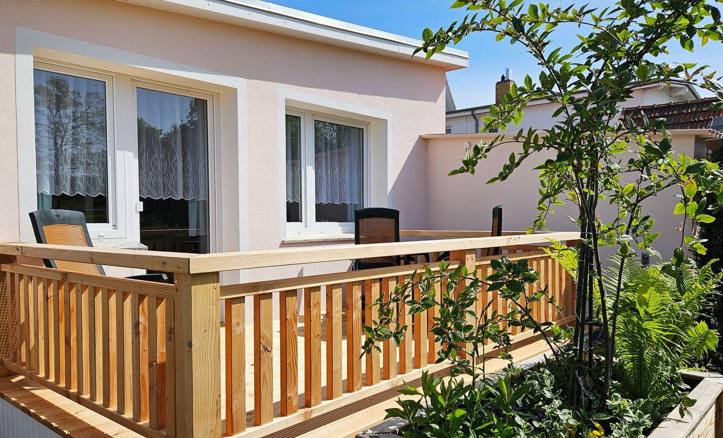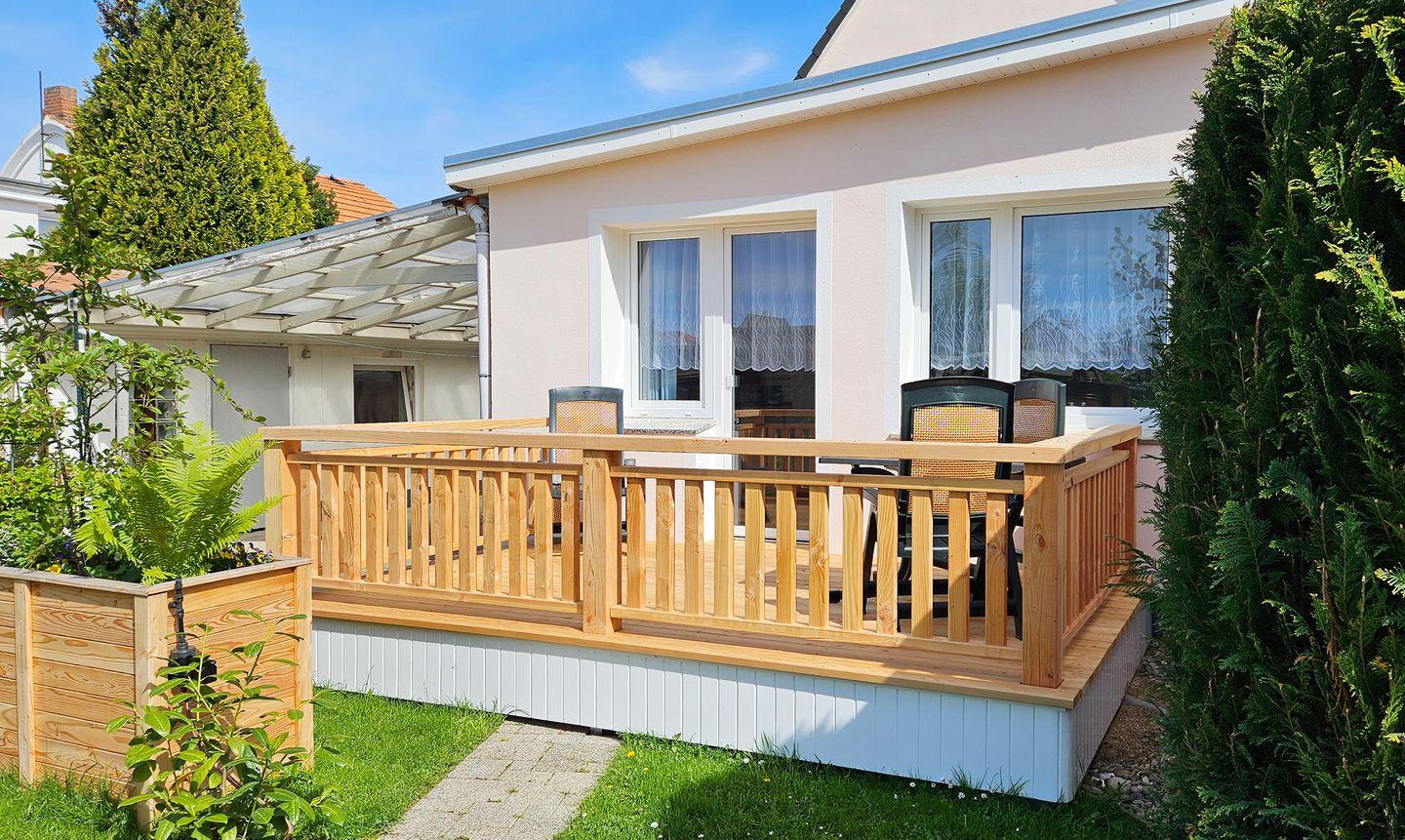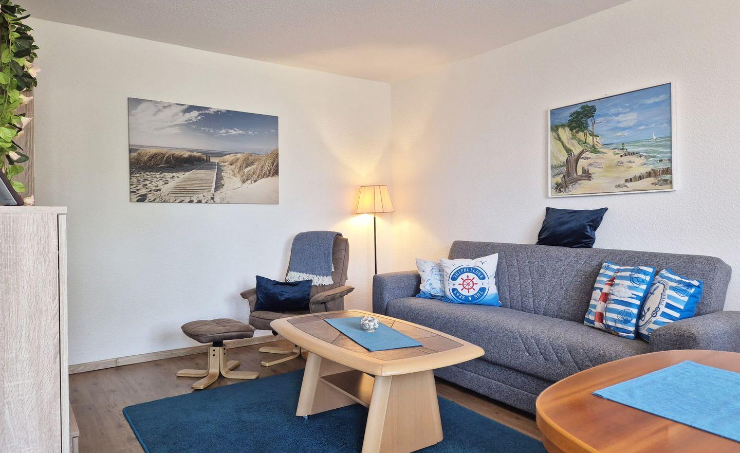 Gemütliche Ferienwohnung Meergarten in Kühlungsborn mit Terrasse, moderner Küche und direktem Zugang zum Strand.