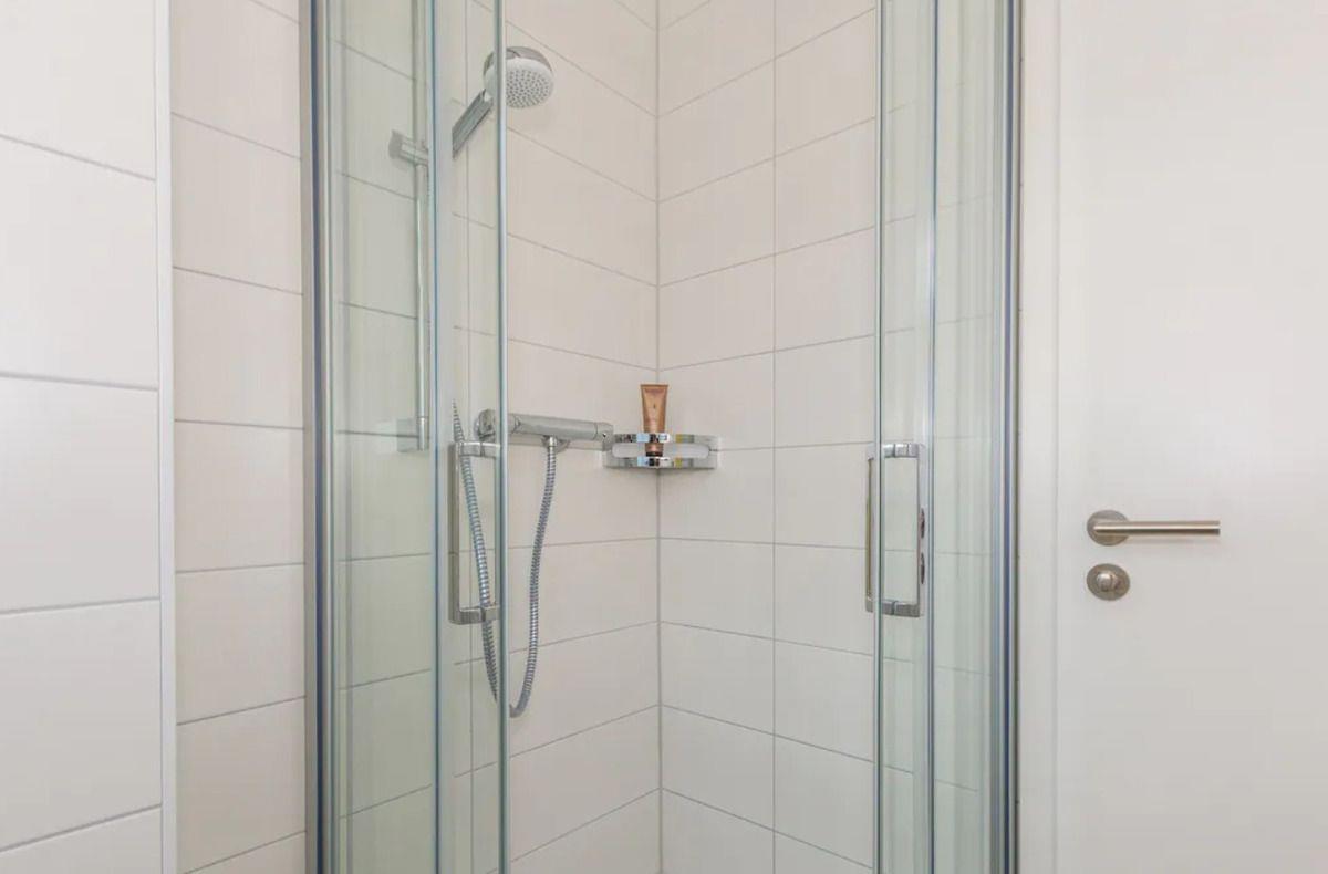 Das moderne Badezimmer (mit Tageslicht / Fenster) verfügt über eine Echtglas-Dusche mit niedrigem Einstieg (seniorenfreundlich!), Waschbecken mit Unterschrank, Handtuch-Heizkörper, Föhn sowie WC.