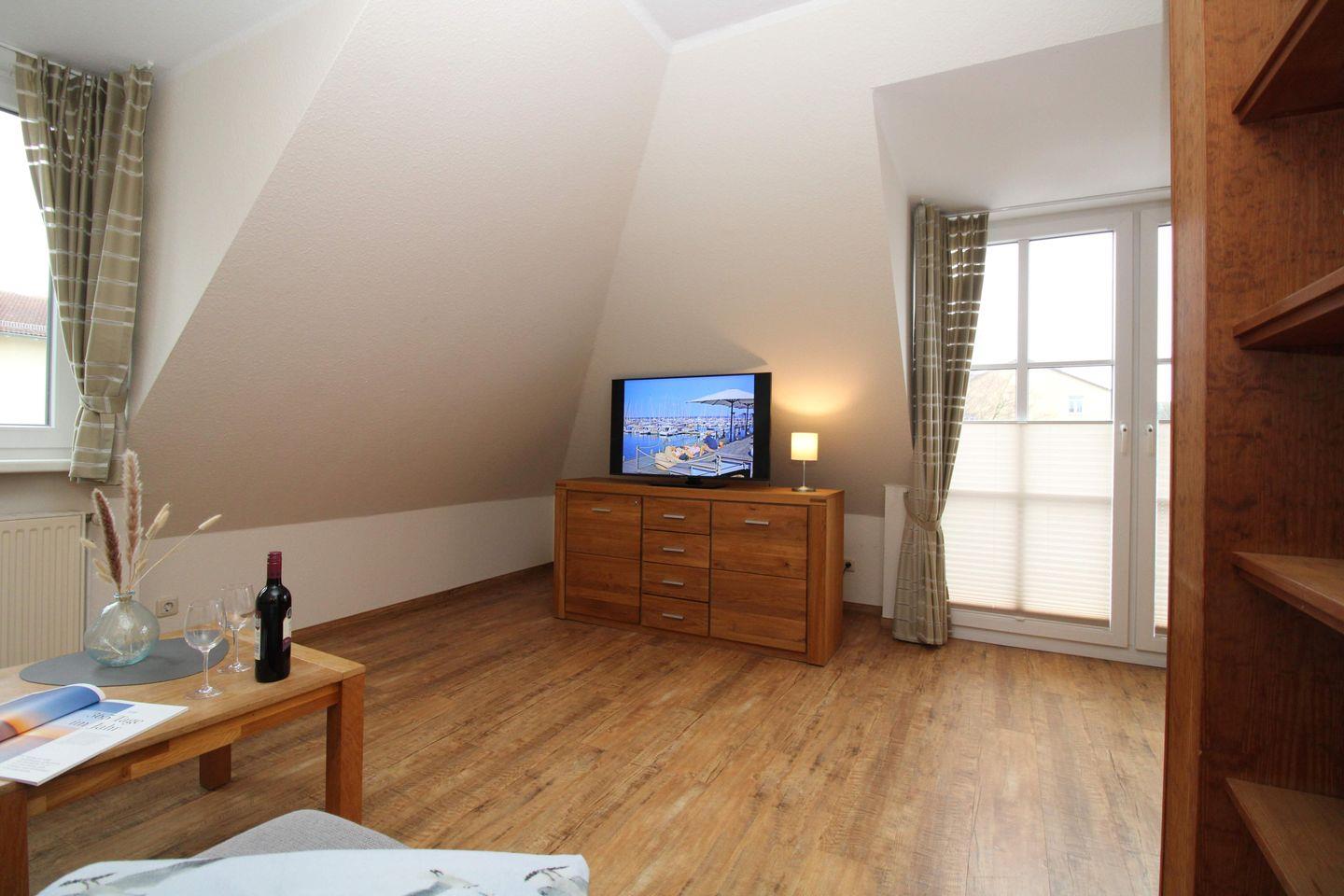 Das strandnahe, moderne und helle 3-Zimmer-Appartement 251 (ca. 62 m²) im 2. Obergeschoss im Haus C (ohne Fahrstuhl) besitzt ein hohes Maß an Wohlfühlkomfort und ist komplett eingerichtet. Der Bodenbelag im gesamten Wohnbereich ist hochwertiger Vinyl-Designbelag in edler Holzoptik, das Bad / WC ist gefliest.