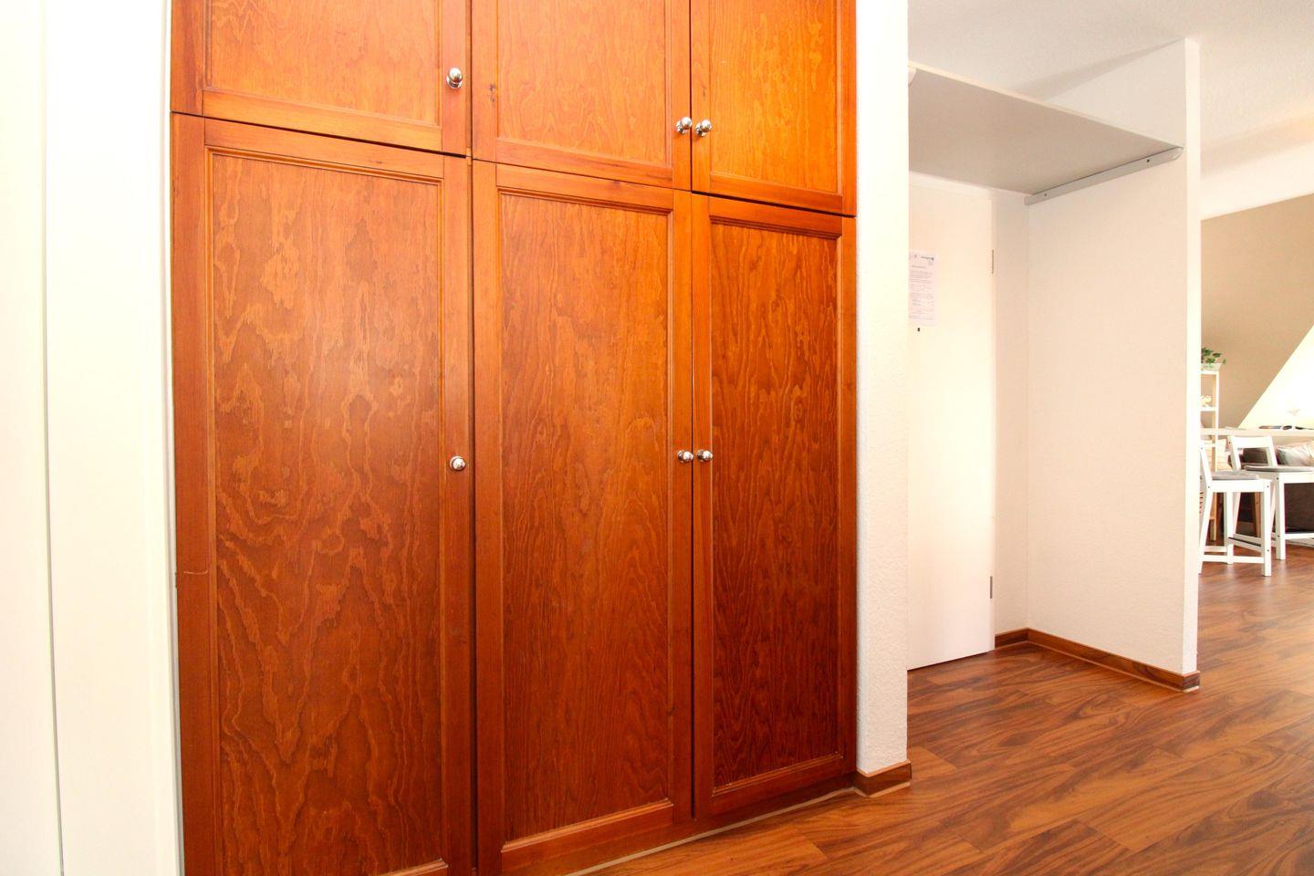 Ihre Jacken und Schuhe können Sie an der großen Garderobe (mit Kommode, Schrank, Sitzbank und Spiegel) im geräumigen Eingangsbereich der Wohnung unterbringen.
