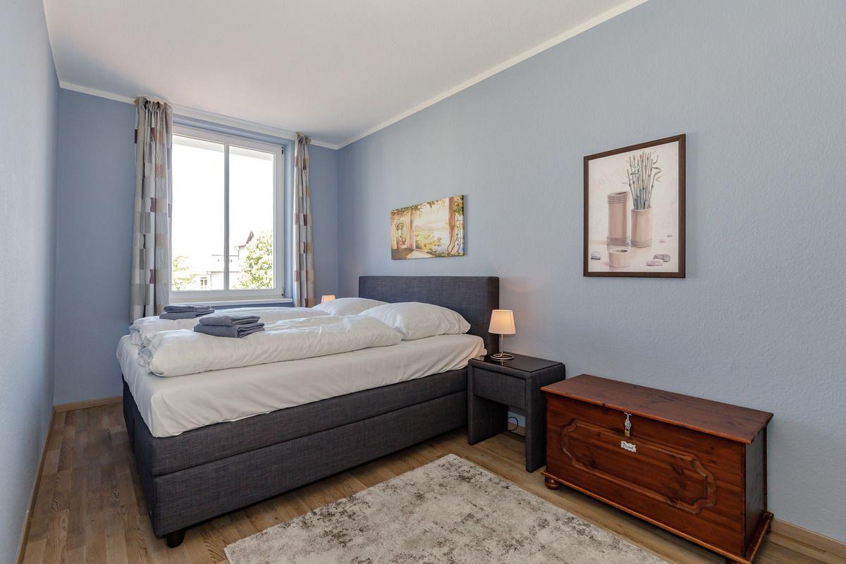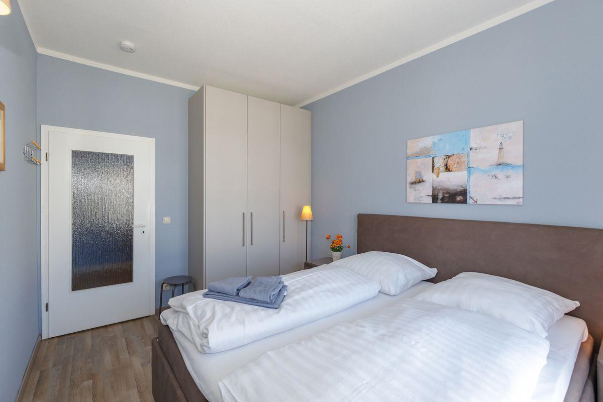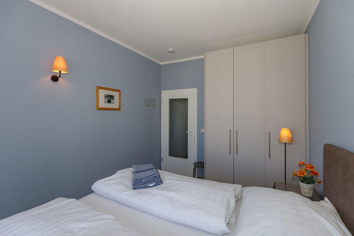 Das separate und zusätzliche 2. Schlafzimmer verfügt ebenfalls über ein bequemes Boxspring-Doppelbett (180 cm x 200 cm), Nachttische mit Nachttischlampen sowie einen geräumigen Kleiderschrank.