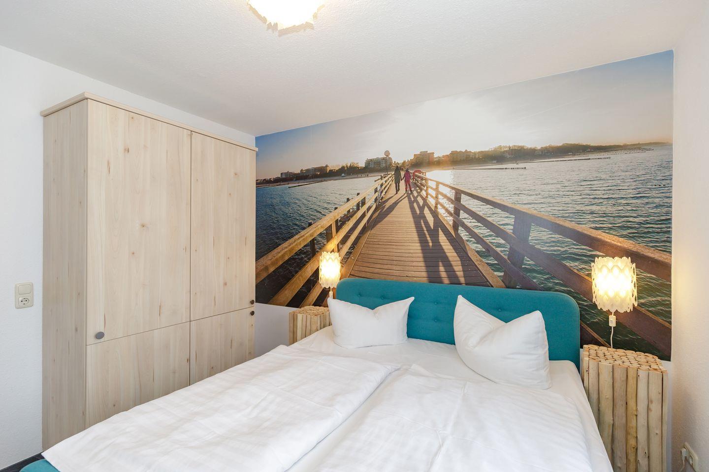 Die strandnahe und moderne 2-Zimmer-Wohnung (ca. 51 m²) im 1. Obergeschoss (mit Fahrstuhl) besitzt ein hohes Maß an Wohlfühlkomfort und ist komplett eingerichtet. Der Bodenbelag im Schlafzimmer ist hochwertiger Vinyl-Designbelag, alle anderen Räumen sind mit Bodenfliesen ausgestattet.