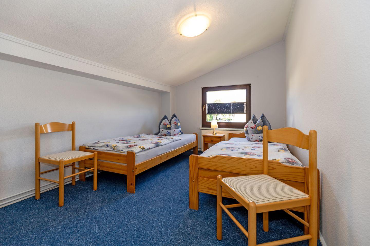 Das zweite Schlafzimmer ist über das erste Schlafzimmer zugänglich und durch eine praktische Schiebetür abgetrennt – so bleibt trotz der Verbindung ein gewisses Maß an Privatsphäre erhalten. Bitte beachten Sie, dass der Treppenaufgang zur Wohnung recht steil ist.