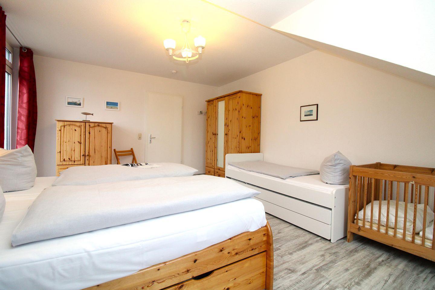 Die Ferienwohnung bietet Schlafmöglichkeiten für insgesamt 5 Personen. Für Kleinkinder stehen Ihnen bei Bedarf auch ein Kinderreisebett sowie ein Kinderhochstuhl kostenfrei zur Verfügung.
