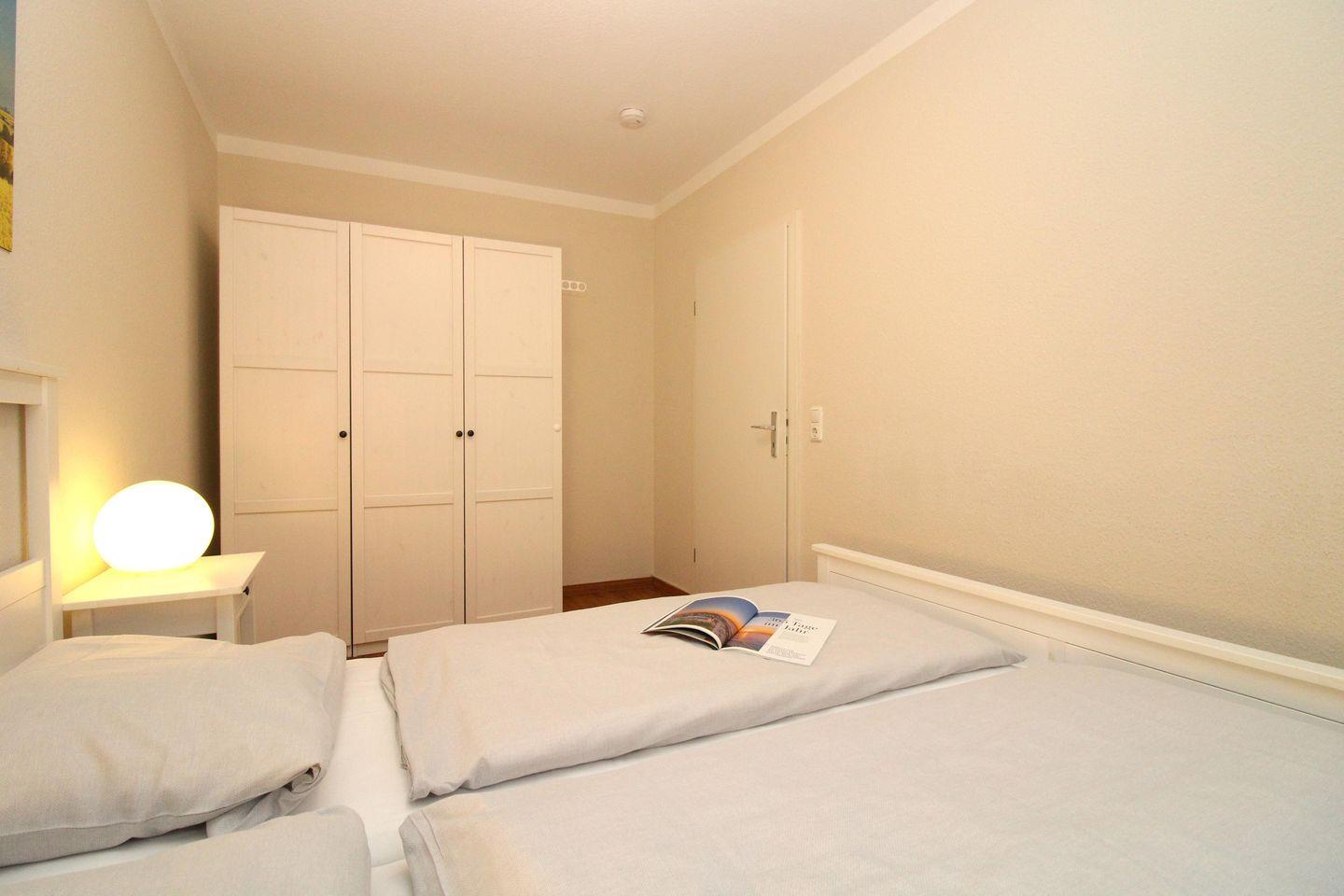 Das separate und zusätzliche 2. Schlafzimmer verfügt ebenfalls über ein bequemes Doppelbett (2 x 80 x 200 cm), Nachttische mit Nachttischlampen sowie einen geräumigen Kleiderschrank.