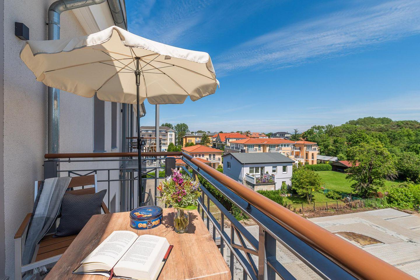Modernes Apartment mit Balkon, Strandkorb, zentral in Kühlungsborn, nahe Ostsee und Freizeitangeboten.
