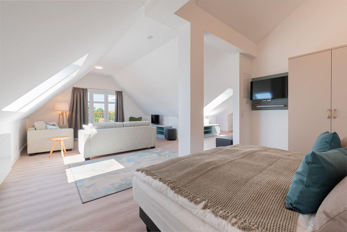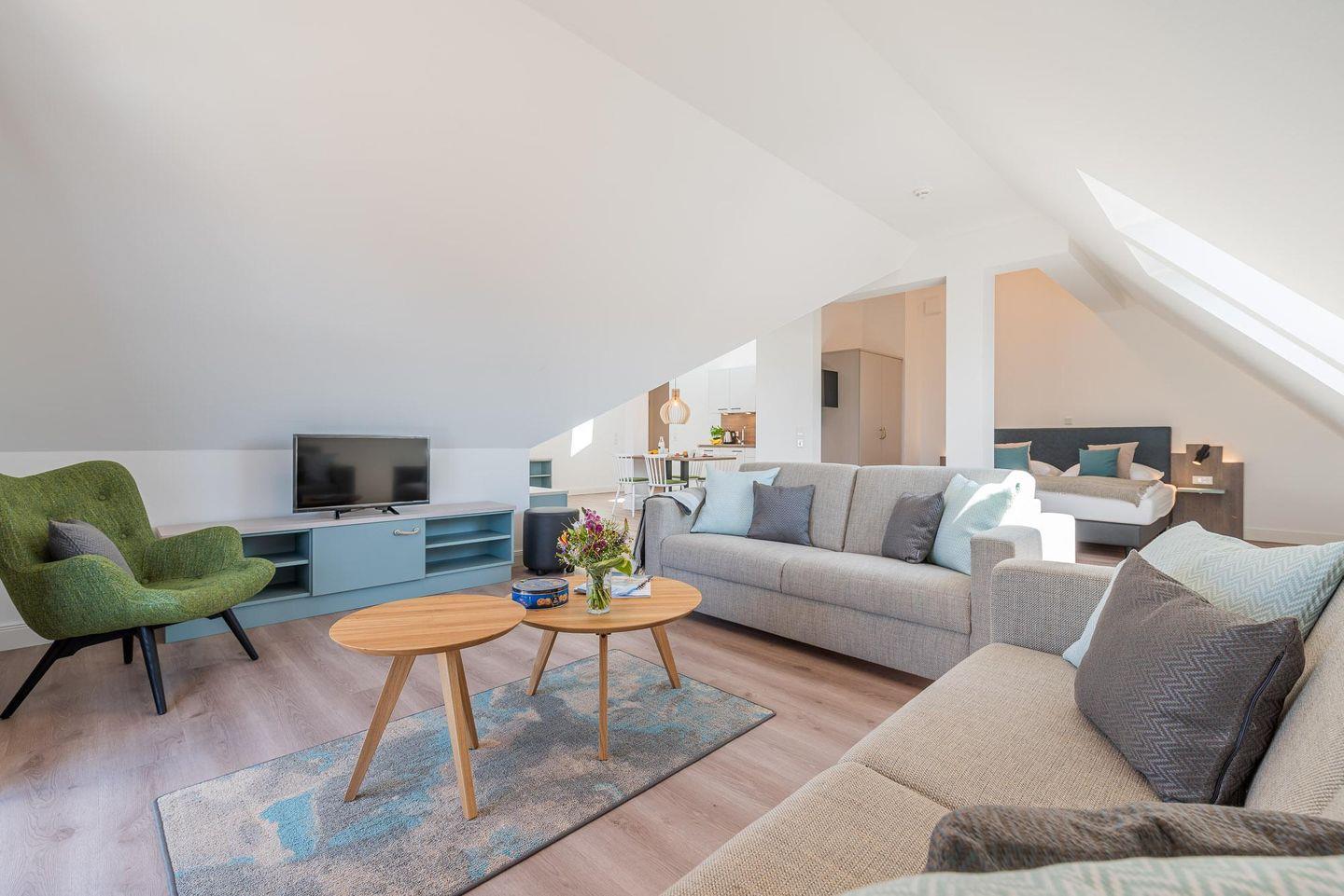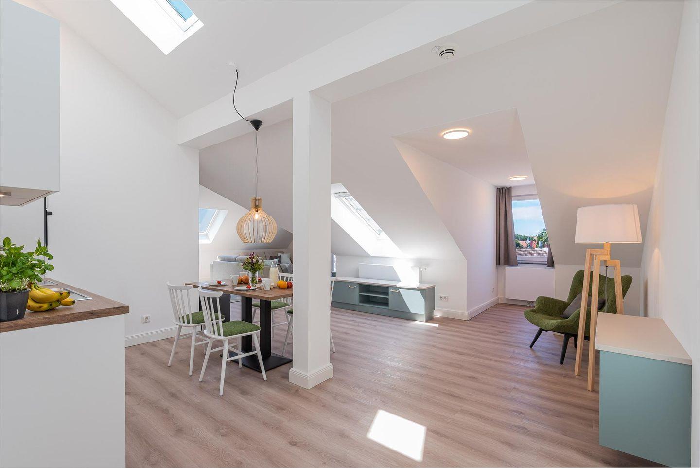 Zu Ihrem Apartment gehört ebenfalls ein großer und lichtdurchfluteter Wohn- und