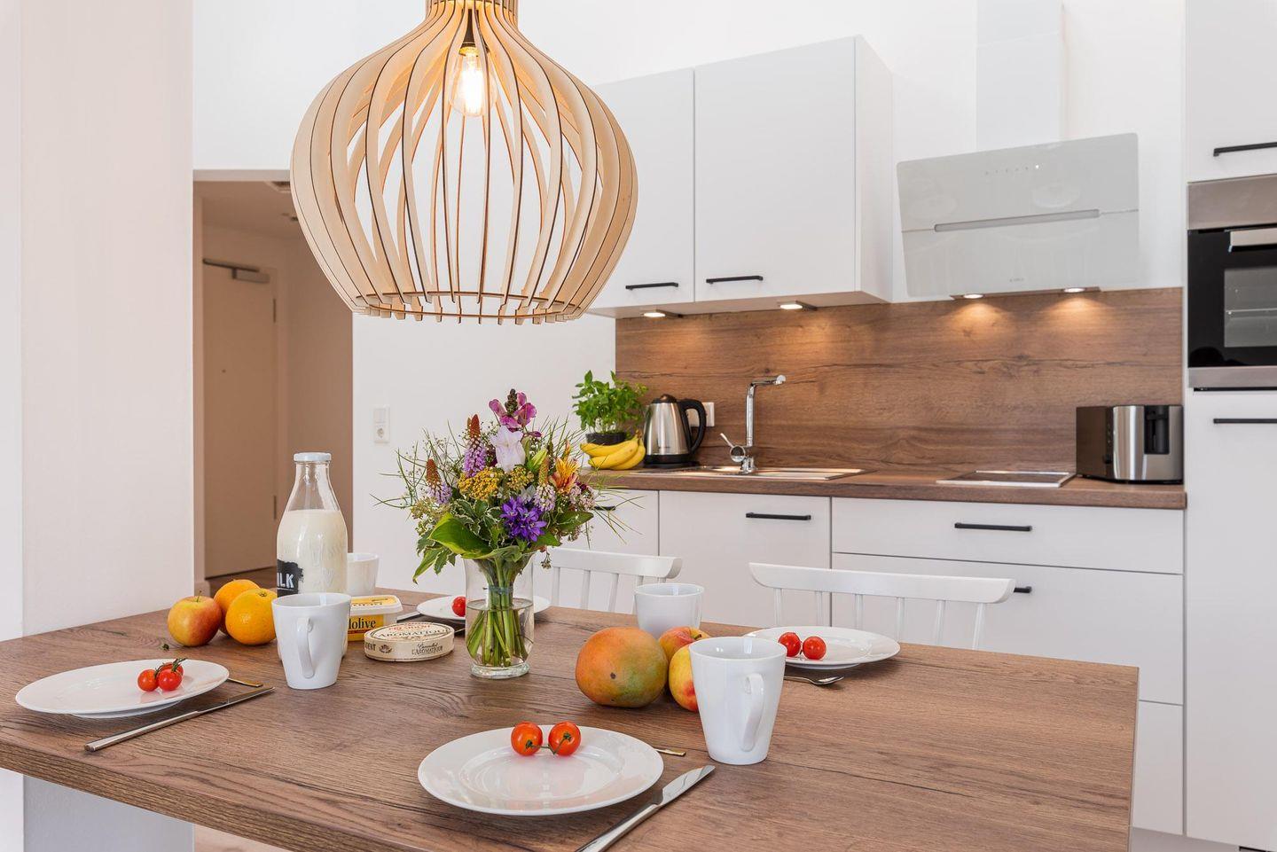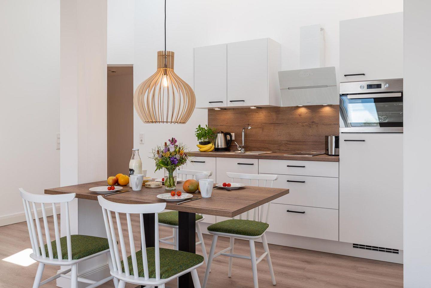 Essbereich mit offener Küche.