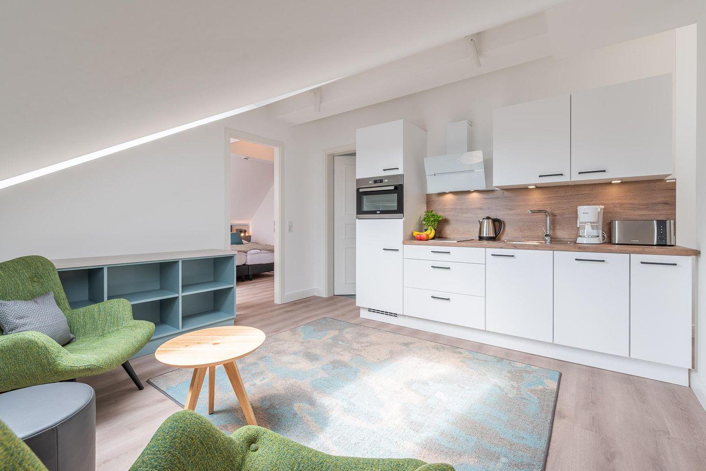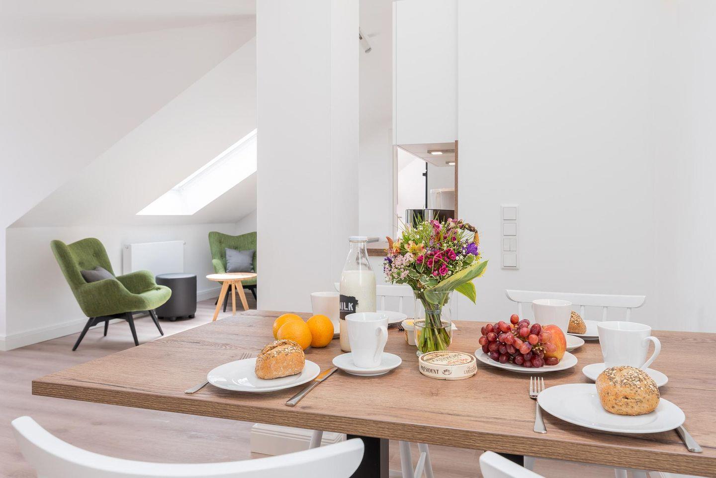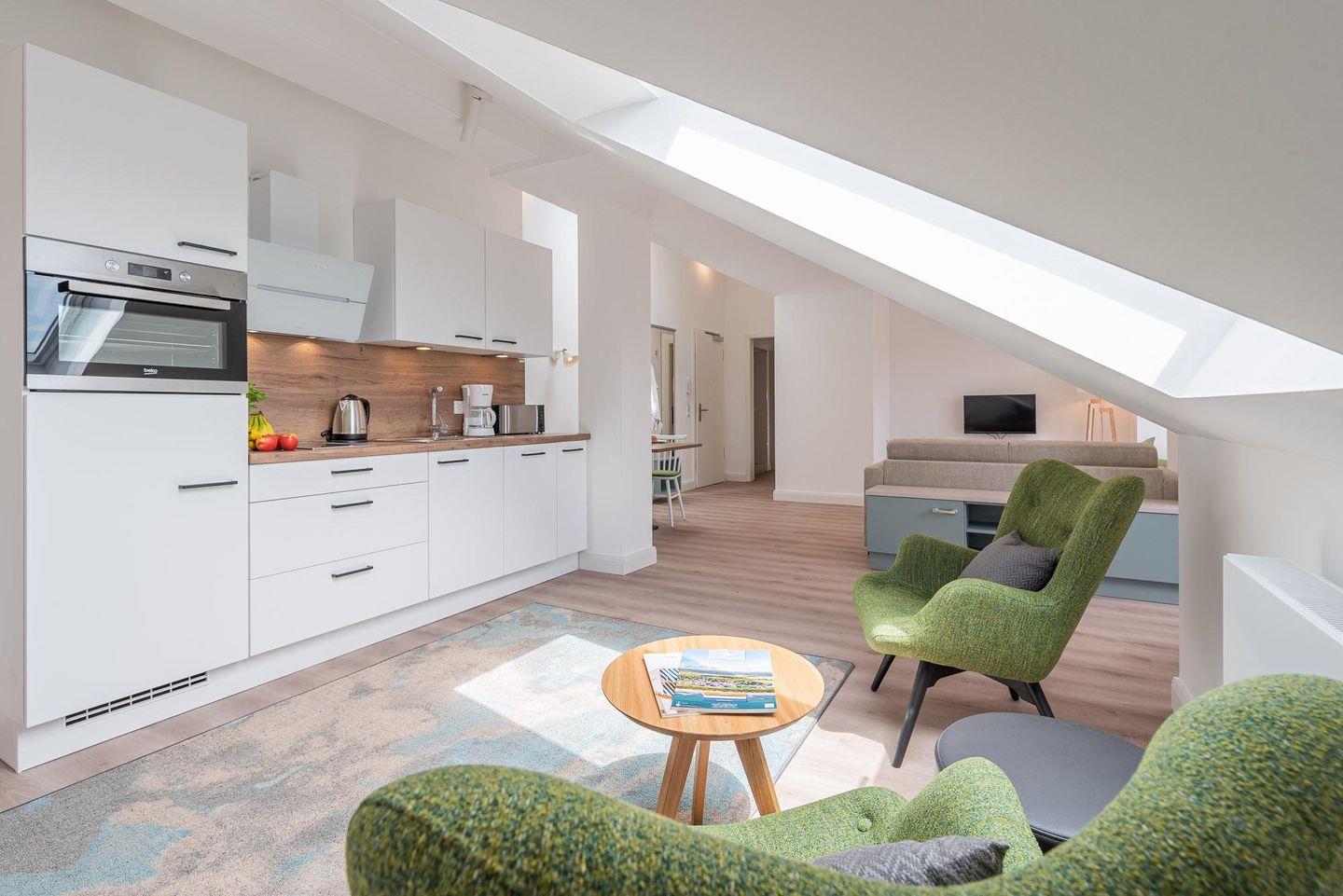 Zu Ihrem Apartment gehört ebenfalls ein großer und lichtdurchfluteter Wohn- und