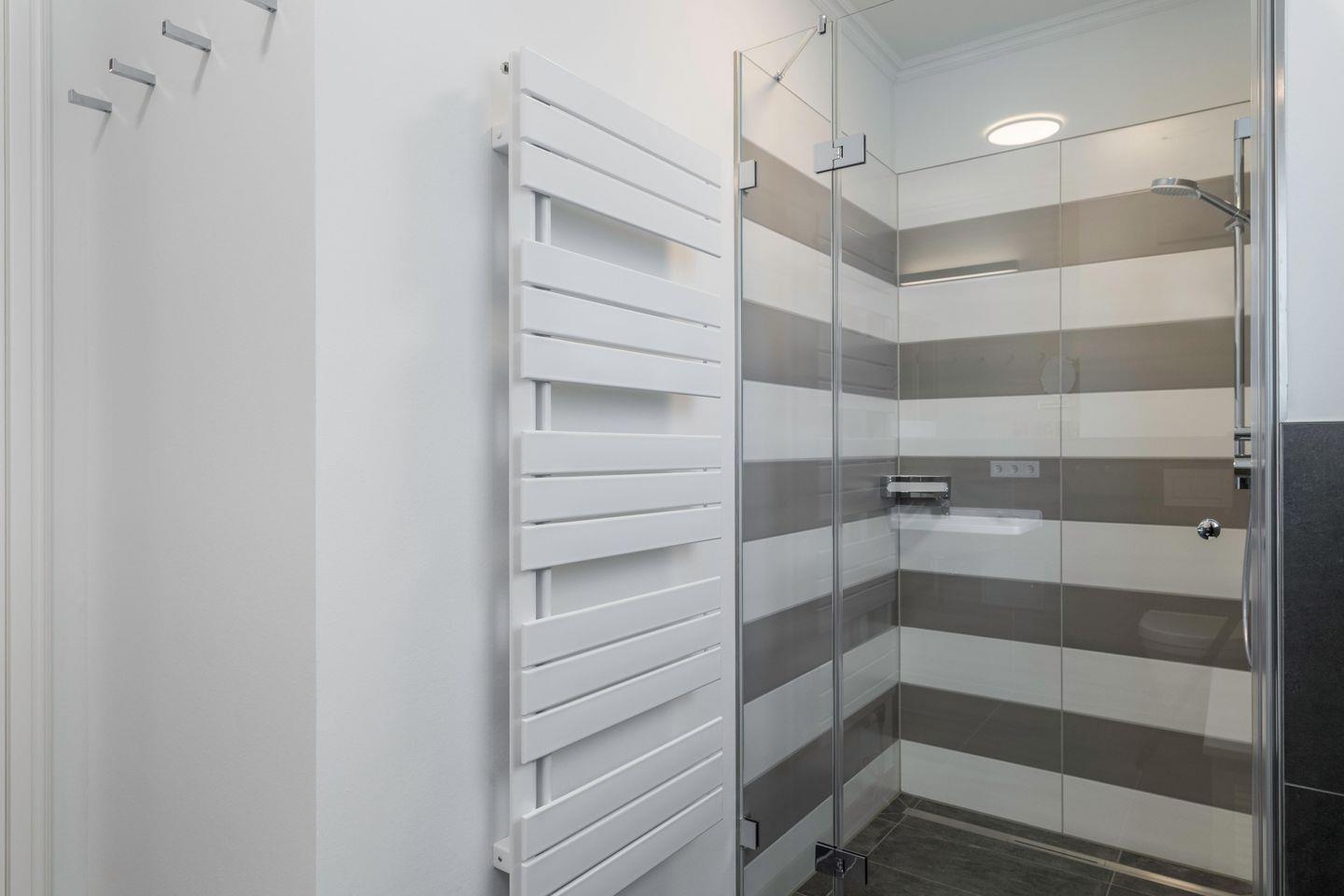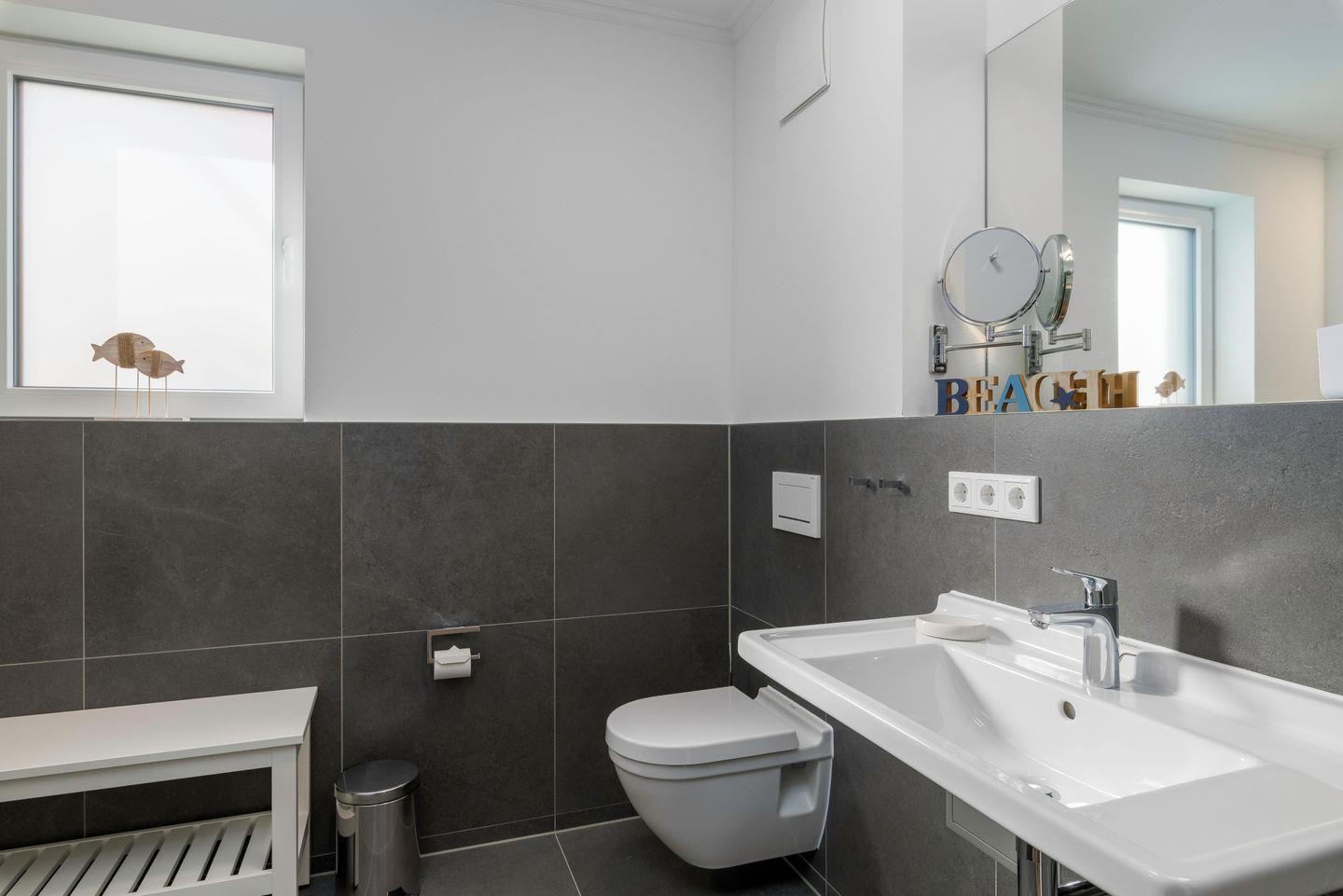 Das Tageslichtbad verfügt über Dusche/WC mit Fußbodenheizung, einen
