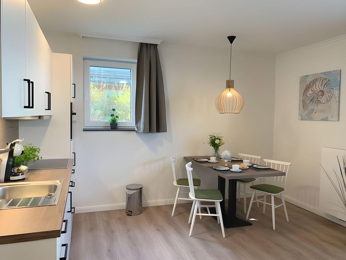 Raum für 4 Personen. Der Wohn-/Essbereich verfügt über Verdunklungsvorhänge,