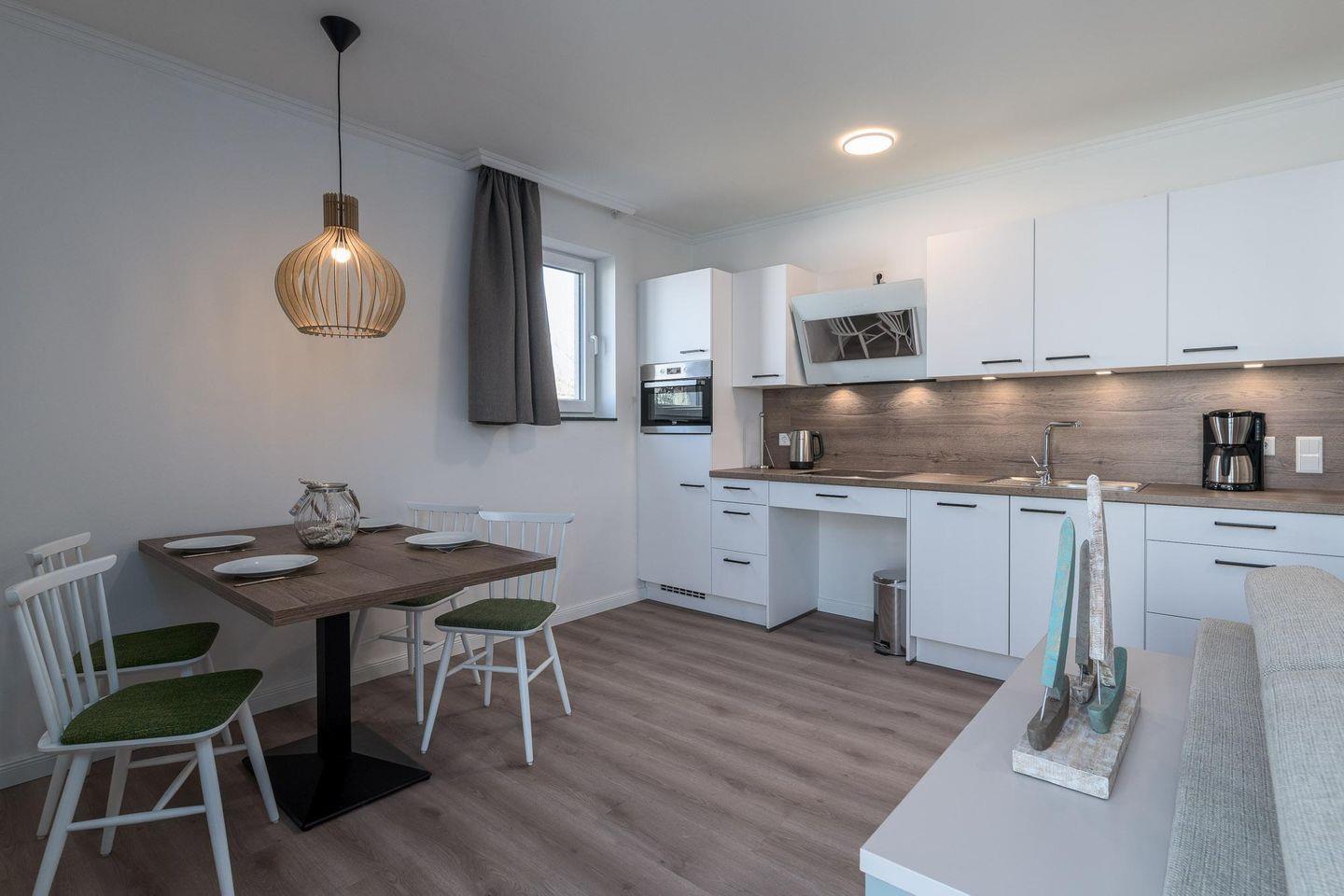 Essbereich mit offener Pantry-Küche. Die sehr gut ausgestattete Küche mit
