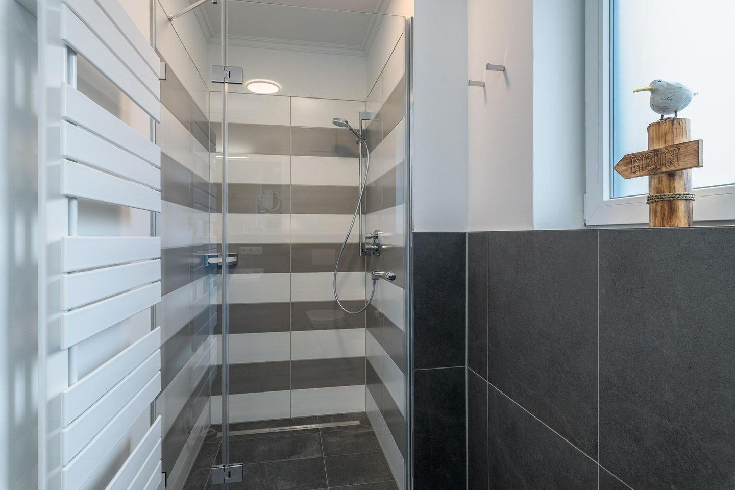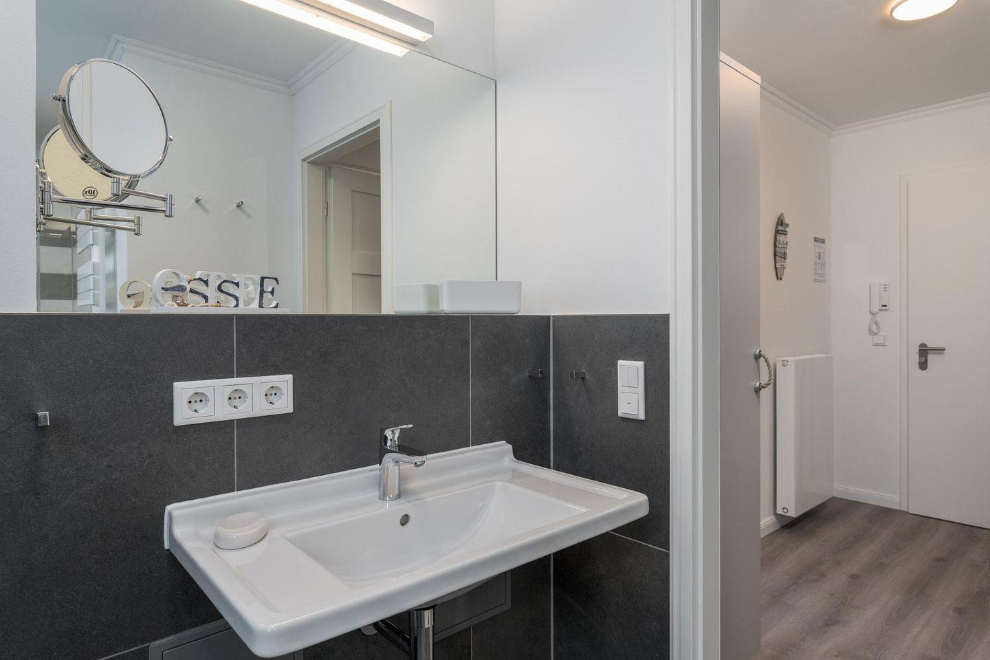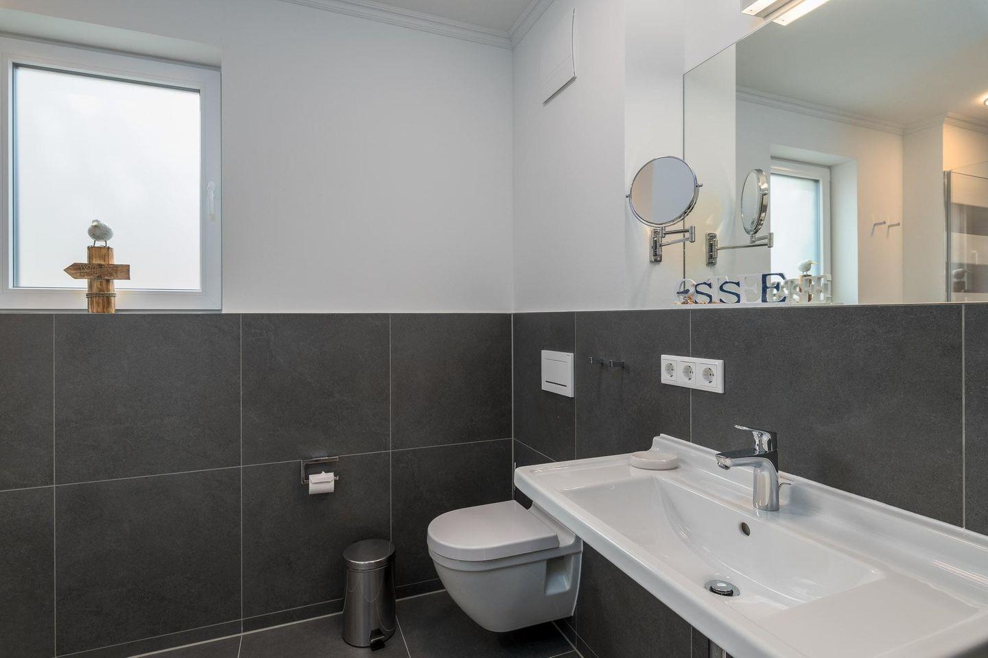 Das Tageslichtbad verfügt über Dusche/WC, einen Haartrockner, Kosmetikspiegel