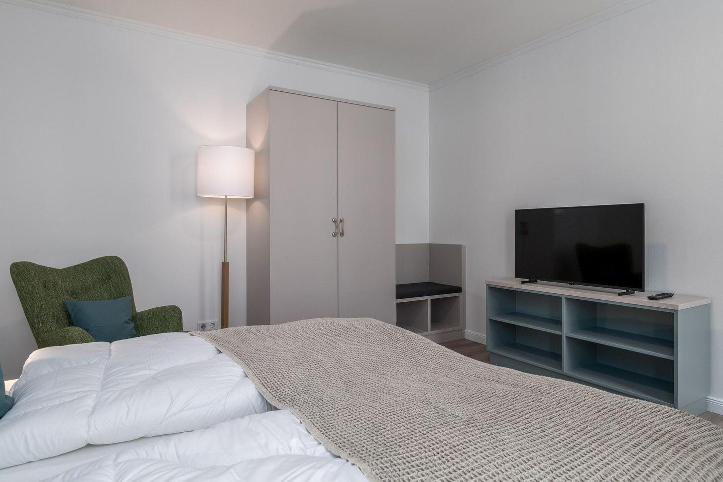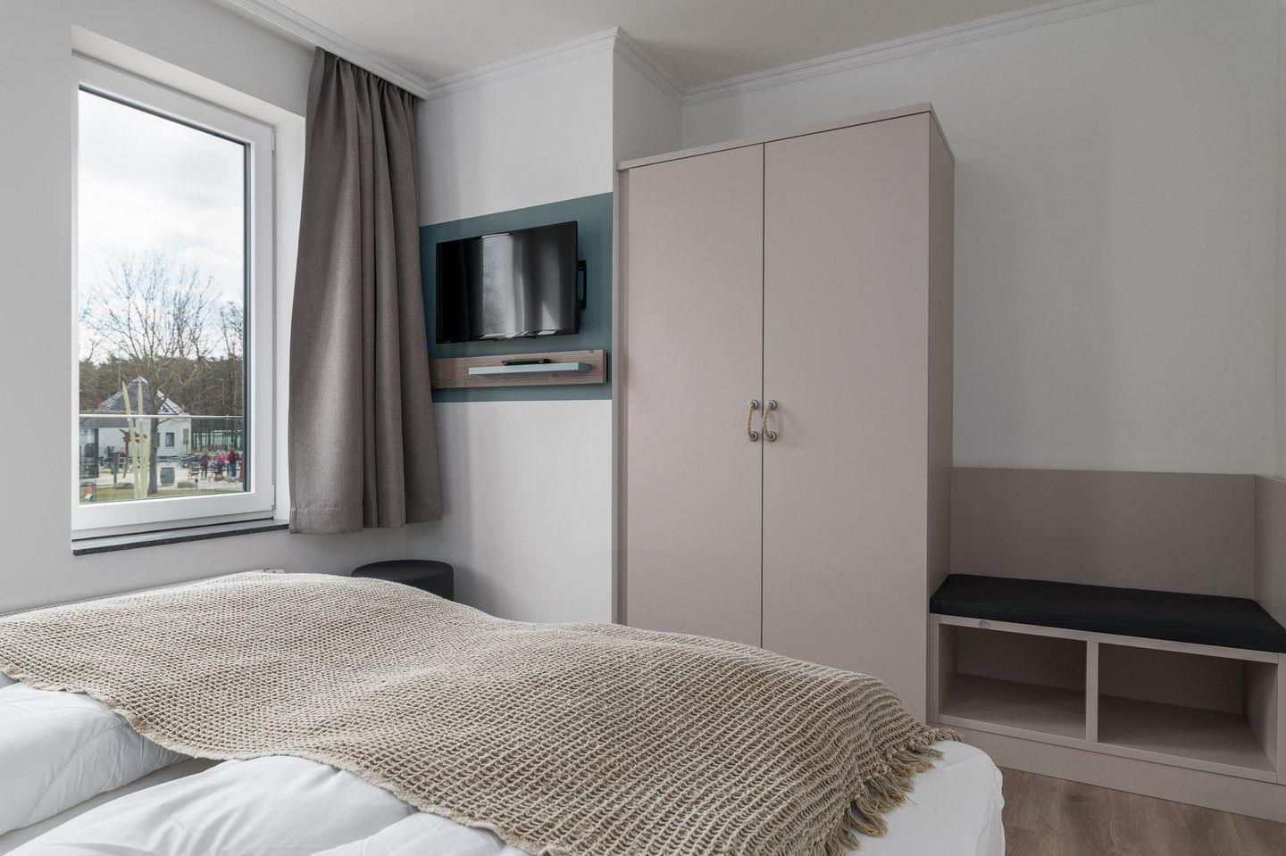 über jeweils 1 Doppelbett (180x200m), einen Kleiderschrank und jeweils einen