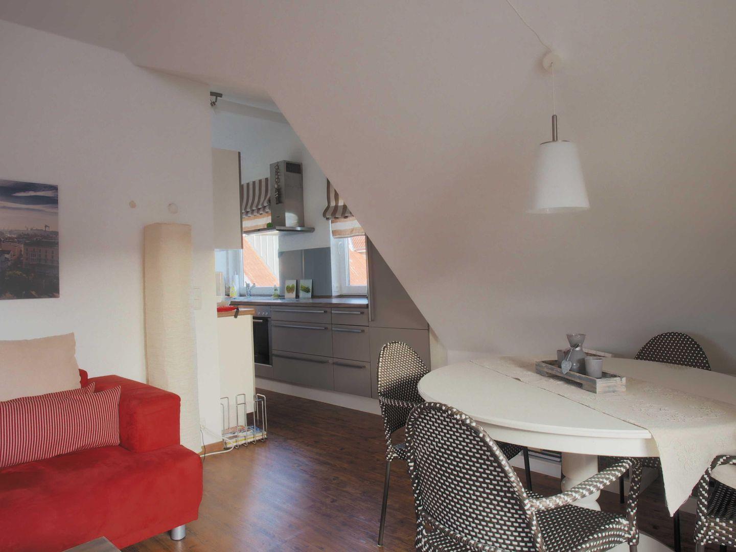 Diese charmante Ferienwohnung für bis zu 3 Personen liegt im Dachgeschoss eines Mehrfamilienhauses und bietet alles, was Sie für einen entspannten Aufenthalt brauchen. Über eine steilere Treppe gelangen Sie in Ihr Urlaubsdomizil, das durch eine helle, freundliche Atmosphäre und eine durchdachte Raumaufteilung überzeugt.
