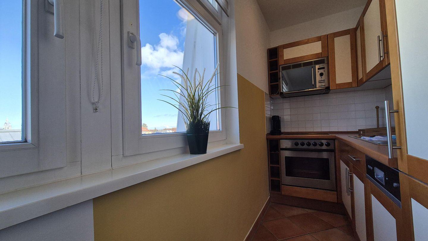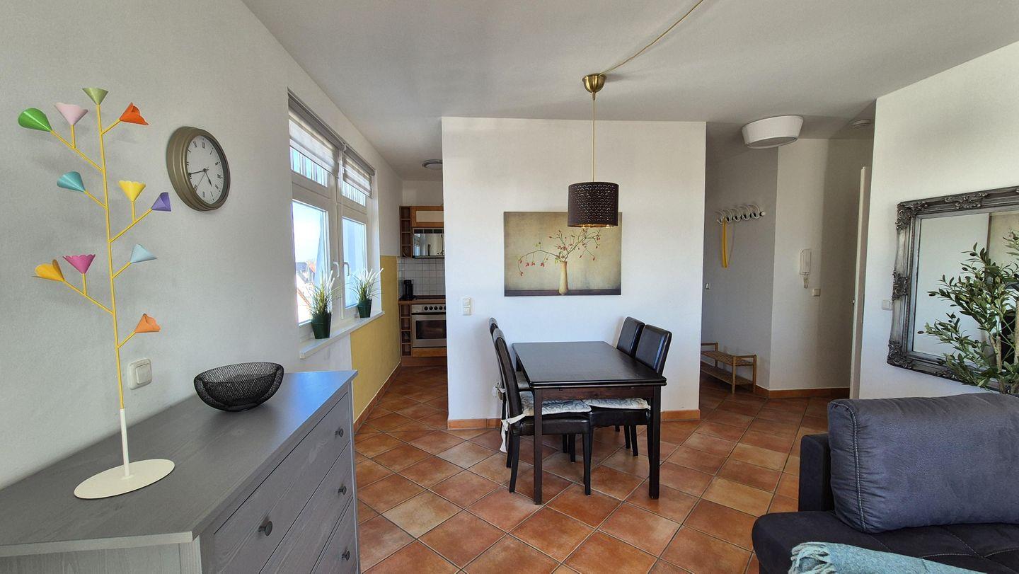 Unsere liebevoll eingerichtete Ferienwohnung im 2. Obergeschoss bietet auf rund 45 m² den perfekten Rückzugsort für einen erholsamen Urlaub an der Ostsee. Der offene Wohn- und Essbereich lädt mit einer gut ausgestatteten Küche zum Kochen und Genießen ein. Vom Wohnbereich mit Schlafsofa gelangen Sie direkt auf den Balkon – hier erwartet Sie ein wunderschöner Weitblick über die Dächer von Kühlungsborn.